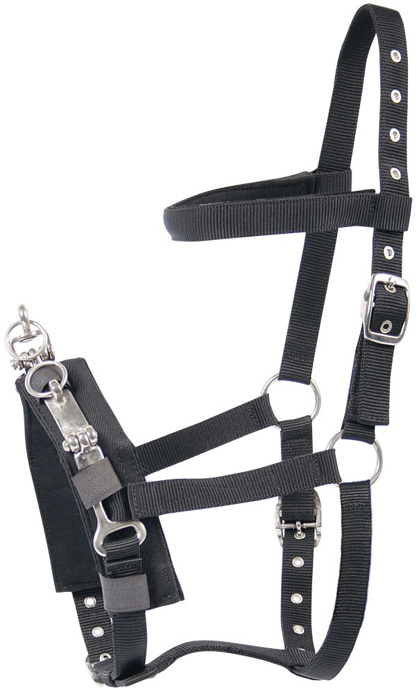 Kaptoom (longeerhalster) is verstelbaar bij kopstuk, neusriem en de keel. Front- en neusriem zijn gevoerd. Beslag op neusriem heeft twee vaste ringen en ÈÈn vrijdraaiende in het midden. Zilverkleurige fournituren. Materiaal: nylon.