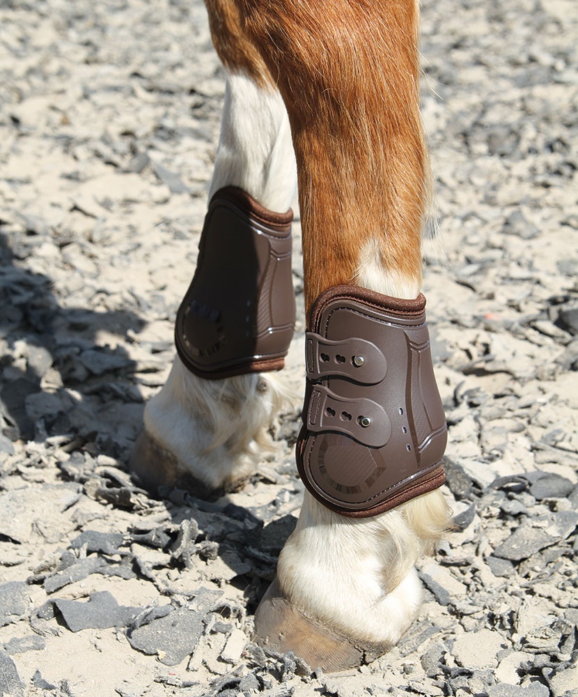 Opties Prachtige kogelbeschermers welke zich kenmerkt door een uitstekende pasvorm. Vervaardigd uit hoogwaardig TPU-materiaal. Afgewerkt met druk-sluitingen (2). Dus geen problemen met loslatend klittenband. De sluitingen hebben een breedte van 3cm. Lengte achterzijde: 11.5cm. Deze beenbeschermer is speciaal ontworpen voor de achterbenen (voorbenen zie artikelnummer 33200013). Deze kogelbechermers voldoen aan de eisen van de FEI/ KNHS voor springrubrieken voor jonge paarden en voor pony's en Children (vanaf 2020 Junioren en Yound Riders en vanaf 2021 voor alle springrubrieken).