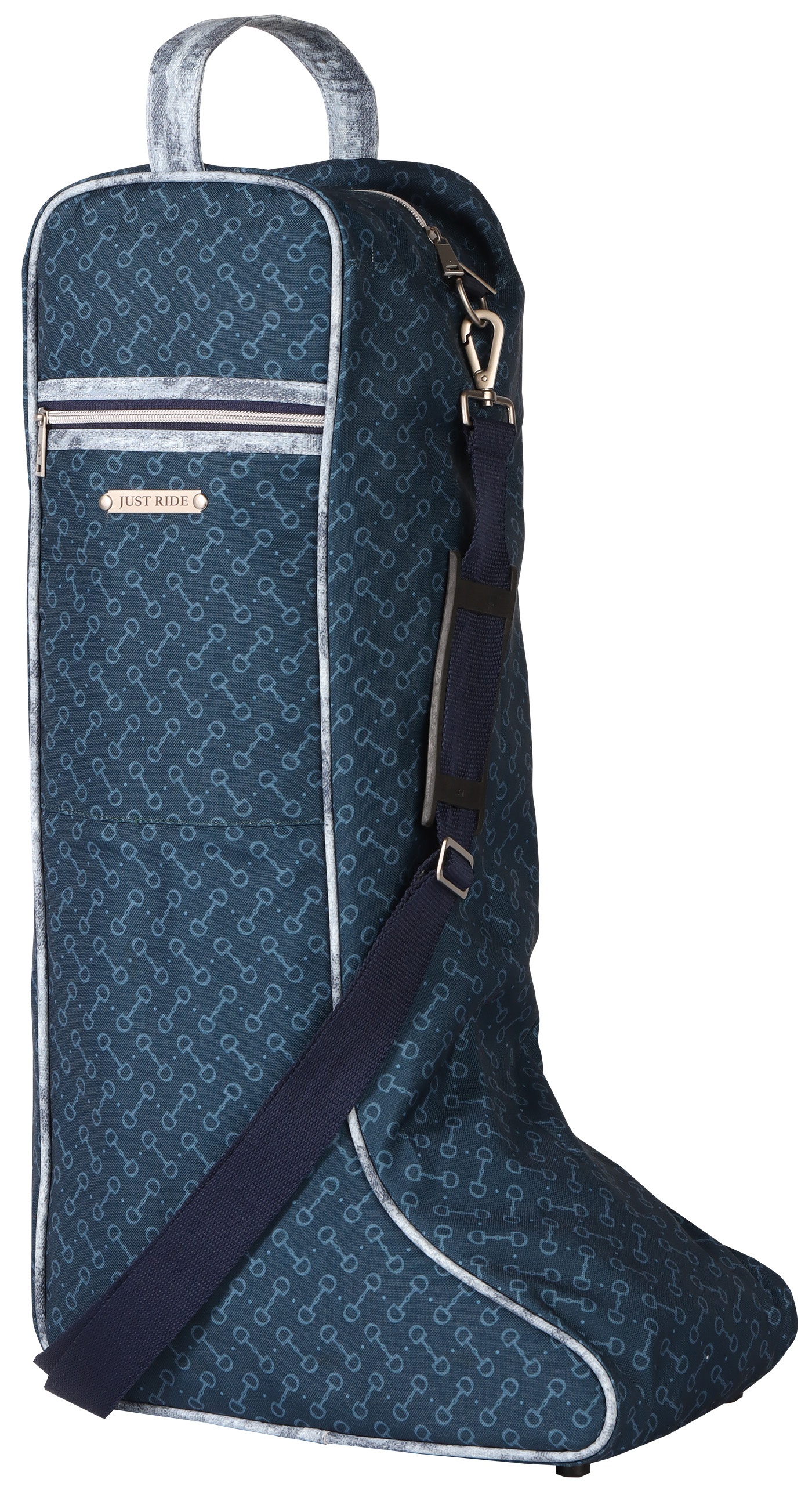 Laarzentas met een leuke allover print, een zakje met ritssluiting aan de rechterkant, handvat en een lange verstelbare en afneembare schouderband. 57cm x 35cm x 23 cm. Materiaal: 100% polyester.