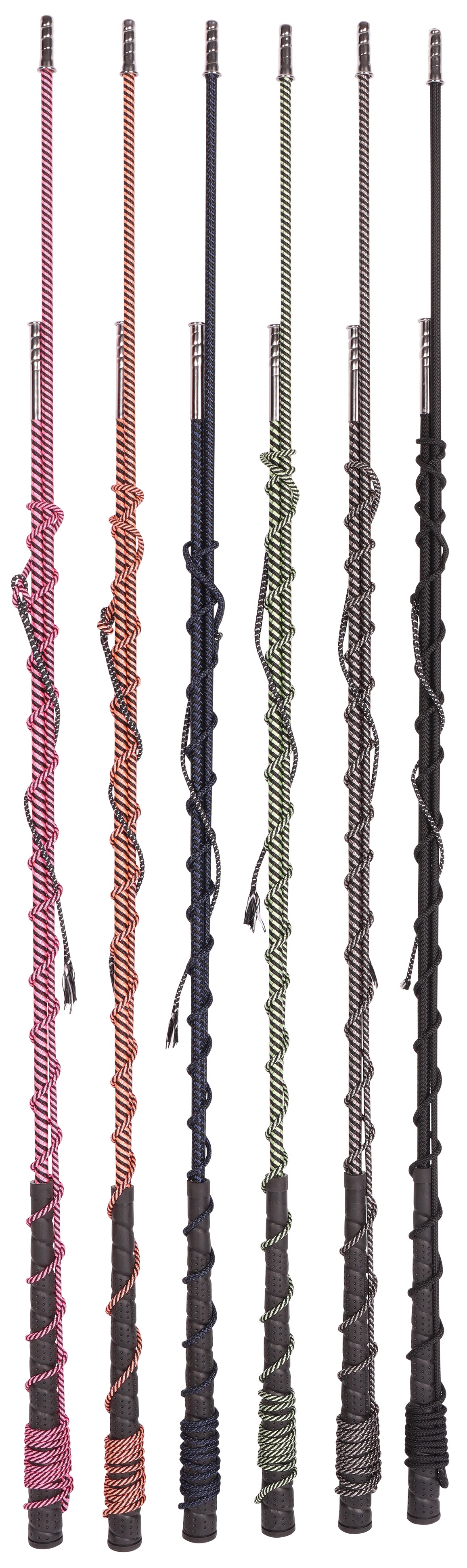Opties Deelbare longeerzweep. Nylon gevlochten steel en slag. Uitgevoerd met een gel-feeling handvat voor een goede handligging, ook bestand is tegen extreme vries- en hitte temperaturen en prettig blijft aanvoelen. Lengte zweep: 180cm, slag: 215cm
