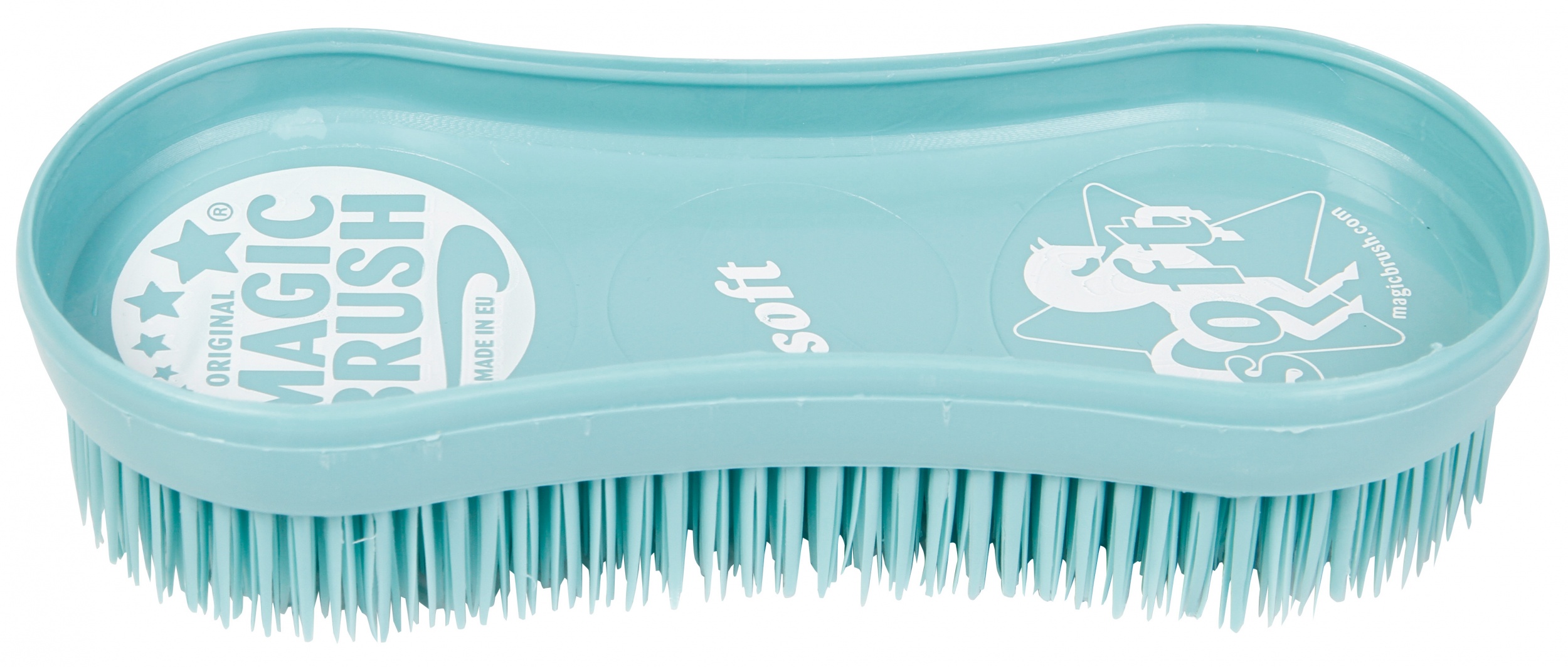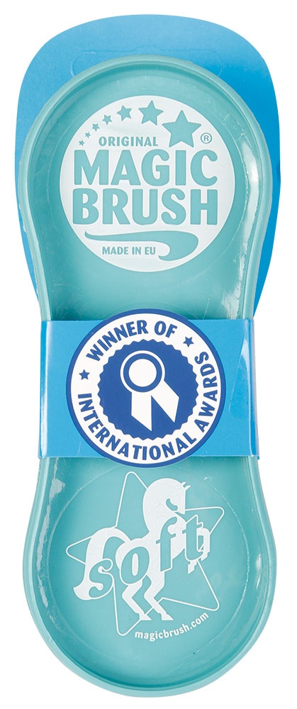 Opties MagicBrush SOFT is de nieuwe verzorgings- en knuffelborstel welke ideaal is voor de meest gevoelige lichaamsdelen van paarden en pony's, zoals het hoofd en de oren. De ultra zachte Quadro borstelharen reinigen bijzonder mild. De zachte massage van de borstel verhoogt het welzijn van het paard. Zelfs zeer gevoelige paarden en pony's genieten van een borstelbeurt met de nieuwe MagicBrush SOFT. De vrolijke kleuren ñTropisch Geel, Licht Blauw en Paars ñ gecombineerd met de kleurrijke prints zijn echt leuk. Zachte reiniging met een knuffel-effect - voor tevreden paarden, ponyís en ruiters. De borstel wordt in de EU geproduceerd, bedrukt en verpakt. MagicBrush ñ simply bright!