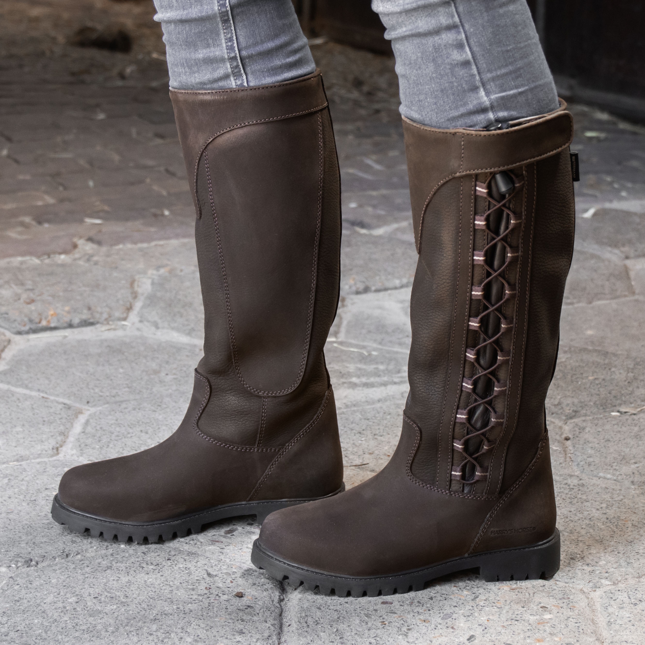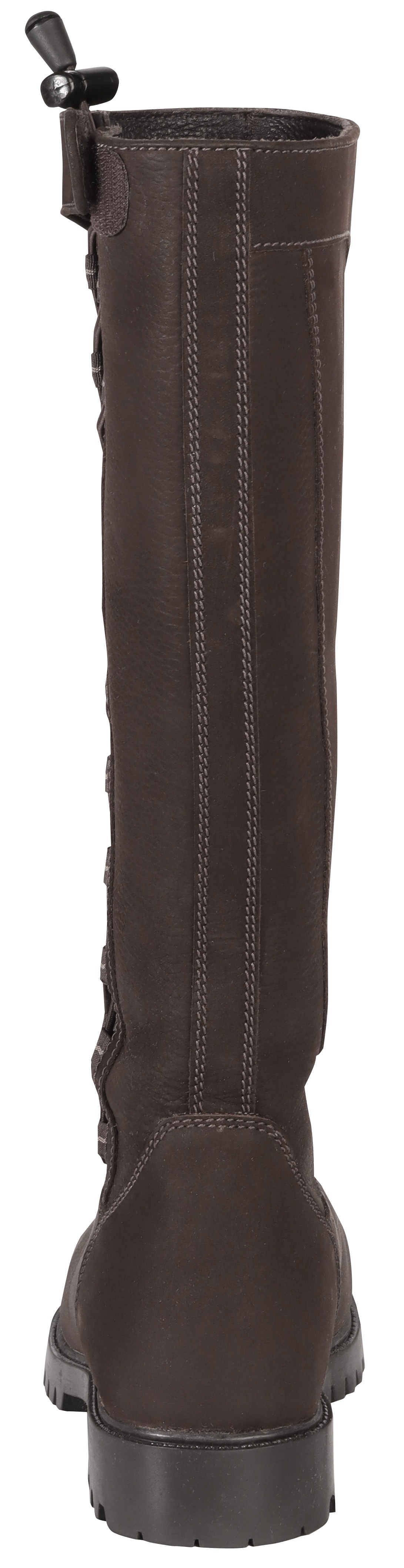 Outdoor laars met rubberen zool. Uitgevoerd in volleder met een waterafstotende buitenzijde. De binnenzijde is volledig gevoerd met een waterdicht membraam. Met aanrijgkoord aan de buitenkant van de laars met stopper aan de bovenkant. De laars heeft een losse inlegzool.