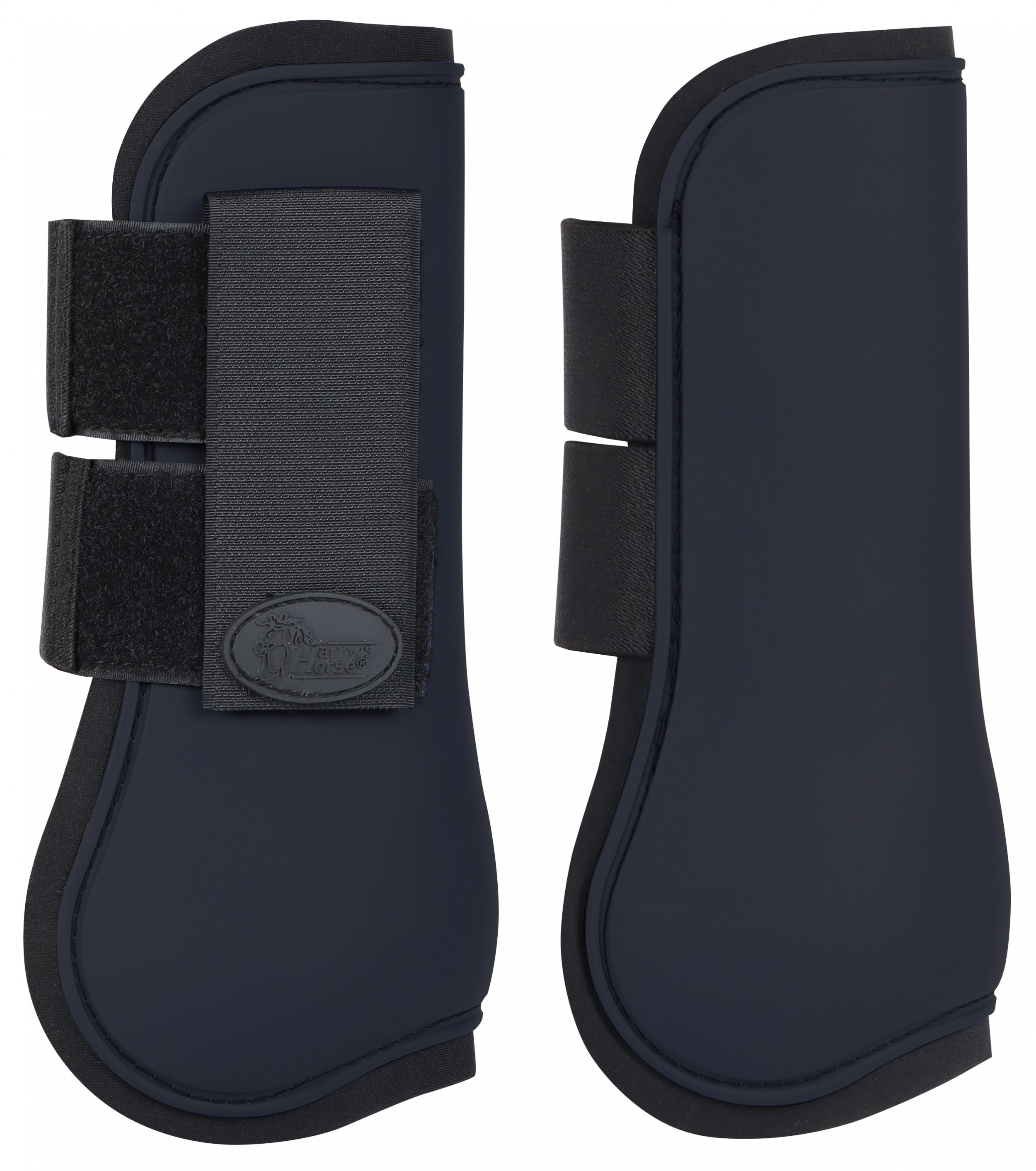 Anatomisch gevormde peesbeschermers van zeer sterk kunststof. Zachte, schokabsorberende neopreen voering tegen schuren. Klittenband elastische sluitingen voor extra comfort en duurzaamheid. Hoogte: Shetland: 19.5cm Pony: 22.5cm Full: 27cm