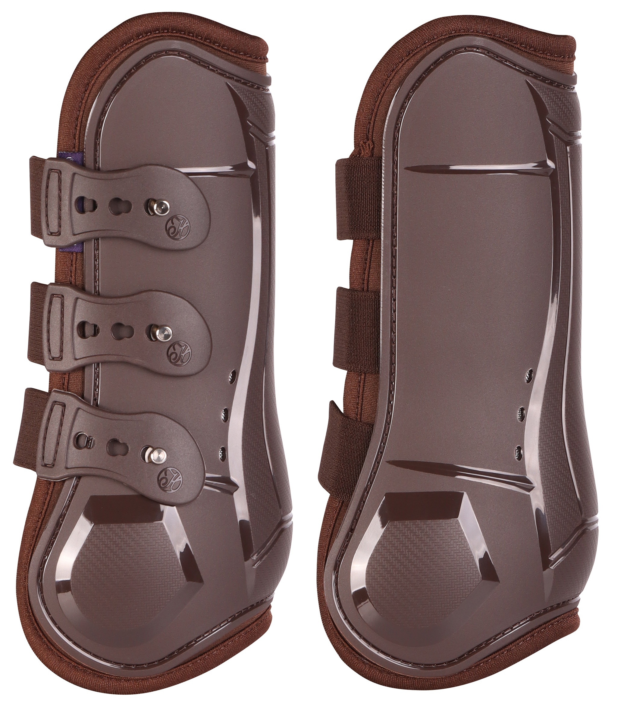 Prachtige peesbeschermers met een perfecte pasvorm. Met sterke, elastische sluitingen. Door de speciale knopsluiting is er geen klittenband nodig. De "metal mesh" ventilatiegaten in de schaal zorgen voor ventilatie en beluchting. Door de optimale pasvorm heeft het paard veel bewegingsvrijheid. De TPU buitenschaal beschermt tegen aantikken en heeft een extra verdikking op de pees en op de kogel voor extra bescherming. Lengte schaal achterzijde: Pony: 18cm Cob: 20cm Full: 21cm. Pony en Cob hebben twee sluitingen en Full drie sluitingen Deze beenbeschermer is speciaal ontworpen voor de voorbenen (achterbenen zie artikelnummer 33200014).