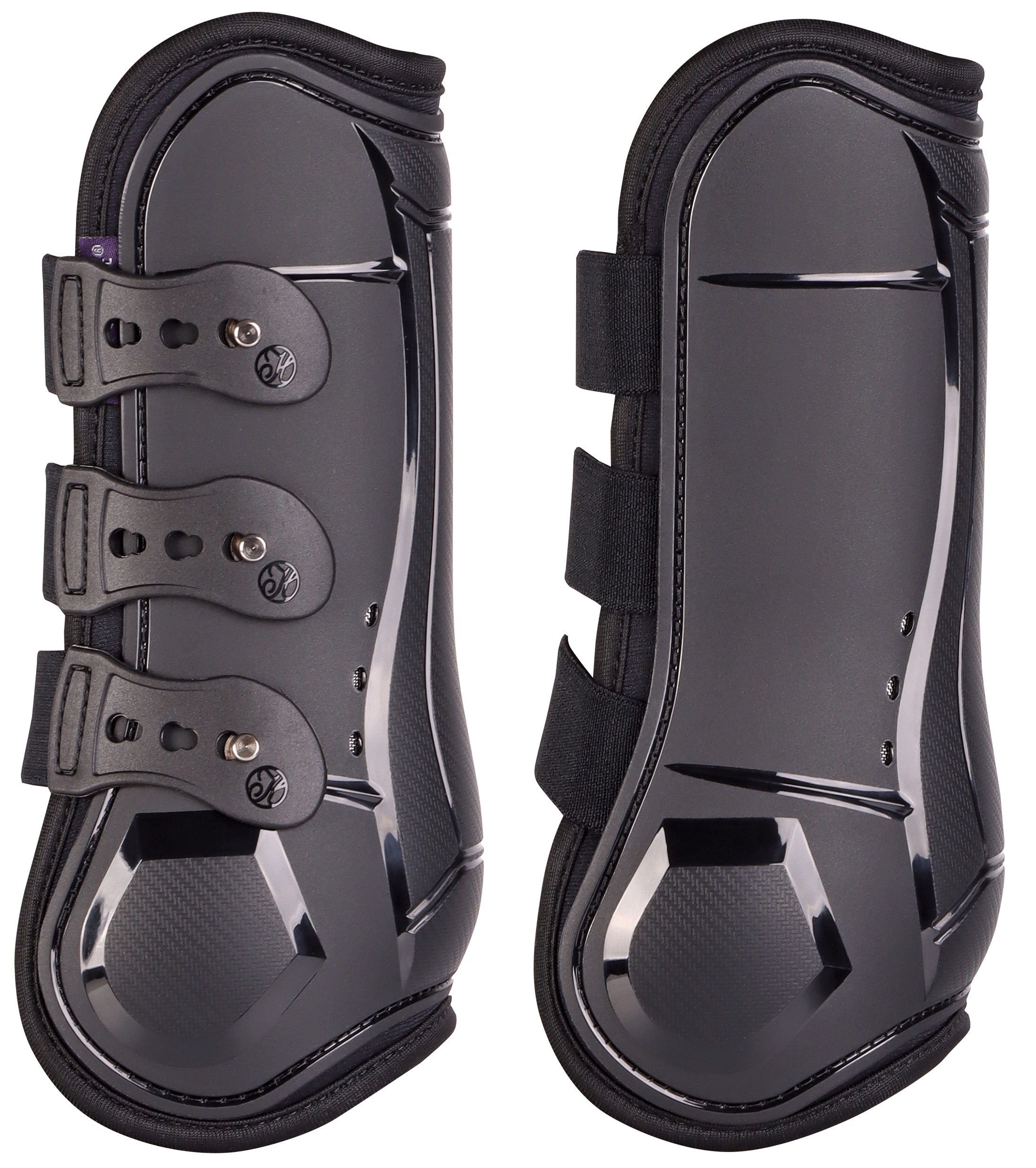 Prachtige peesbeschermers met een perfecte pasvorm. Met sterke, elastische sluitingen. Door de speciale knopsluiting is er geen klittenband nodig. De "metal mesh" ventilatiegaten in de schaal zorgen voor ventilatie en beluchting. Door de optimale pasvorm heeft het paard veel bewegingsvrijheid. De TPU buitenschaal beschermt tegen aantikken en heeft een extra verdikking op de pees en op de kogel voor extra bescherming. Lengte schaal achterzijde: Pony: 18cm Cob: 20cm Full: 21cm. Pony en Cob hebben twee sluitingen en Full drie sluitingen Deze beenbeschermer is speciaal ontworpen voor de voorbenen (achterbenen zie artikelnummer 33200014).