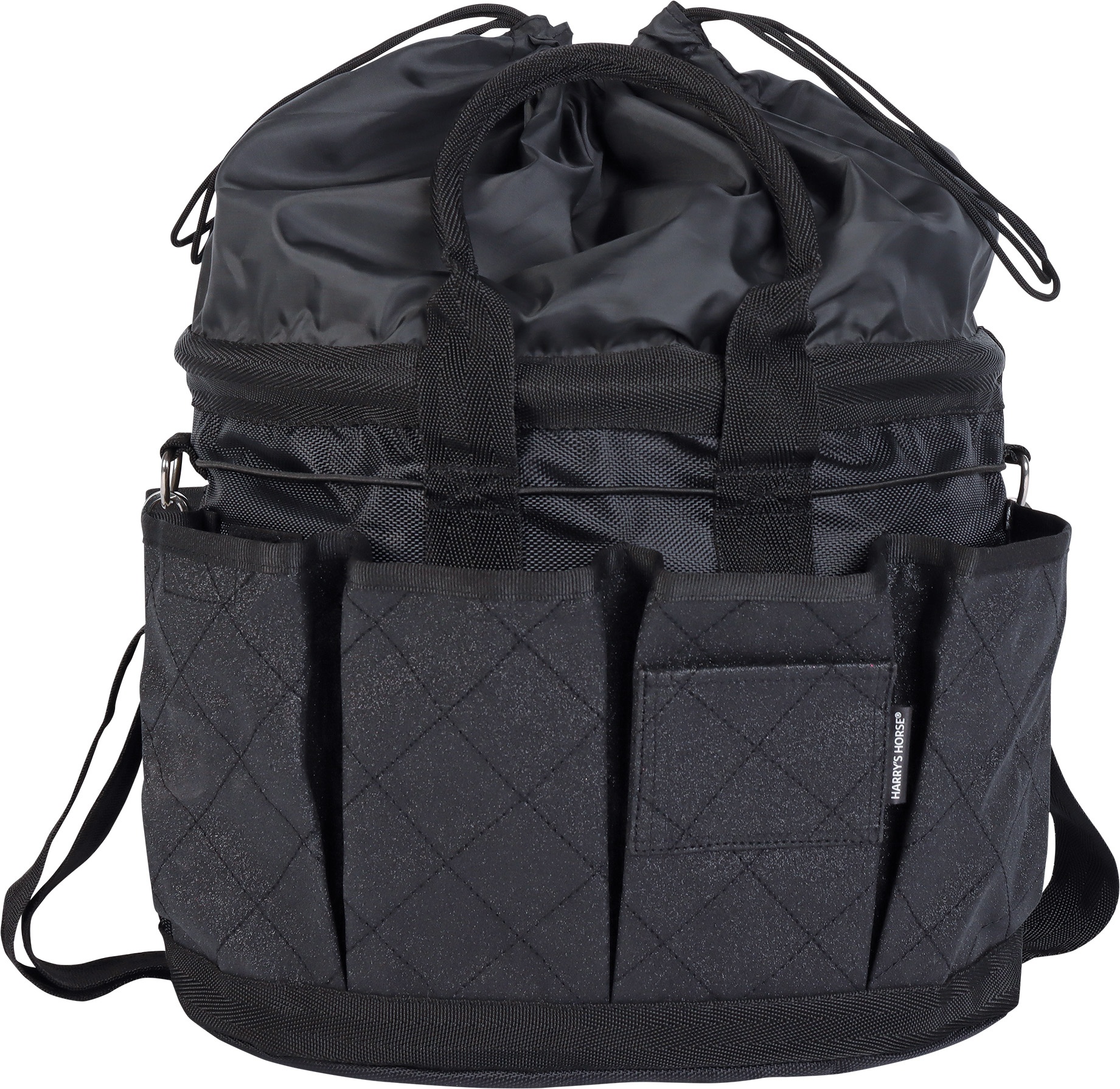 Chique poetstas met vele opbergvakken! Bovenkant afsluitbaar met trekkoord. De poetstas heeft zowel aan de binnen- als buitenzijde een afsluitbaar vak met een rits. Met afneembare schouderband. Materiaal tas: 600D polyester Afmetingen: 33x24x28 cm