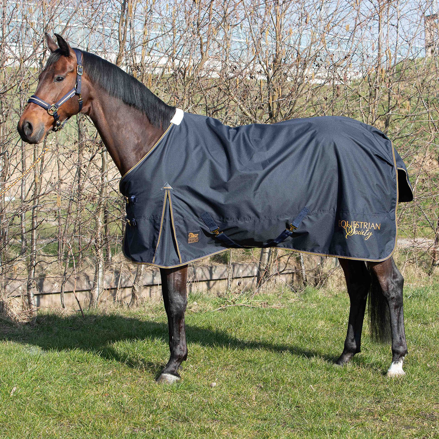Outdoordeken waterdicht en ademend met een zachte fleece voering. Naadloos op de rug en verder met een dubbele snelsluiting voor, staartflap, polyester gevoerd op de borst, kruissingels, getapede naden en afneembare elastische bilkoorden. 600D ripstop polyester. Waterdichtheidswaarde: 3000WR/WP Ademend vermogen: 3000MVP Voering: 100% polyester fleece.