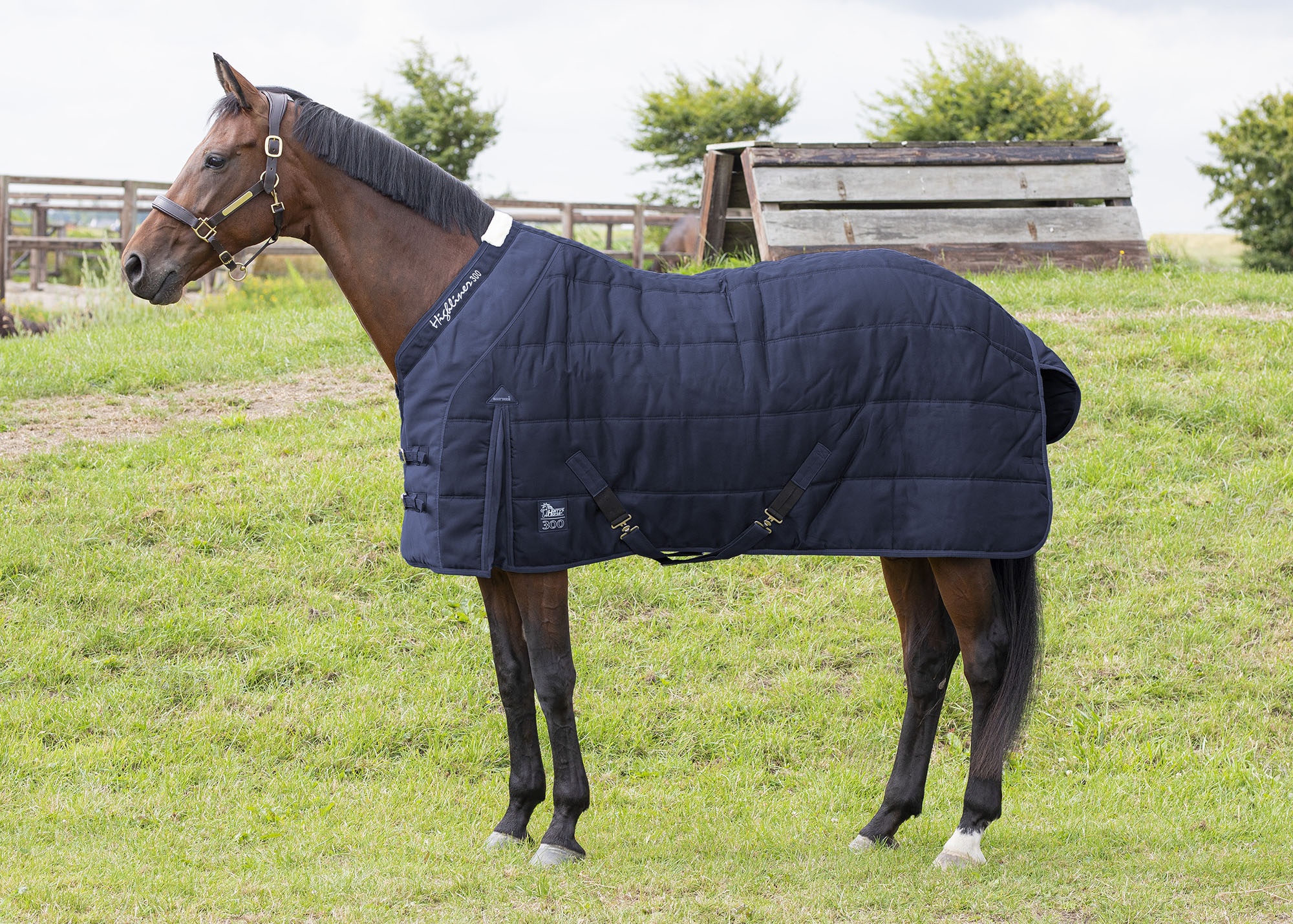 Staldeken model Highliner met comfortabele mini hals en een optimale pasvorm. 300 Denier polyester, loopsplit, staartflap, lage kruissingels met elastieken inzet. 2 voorsluitingen en afneembare elastische bilkoorden. 300 gram vulling en een polyester voering.