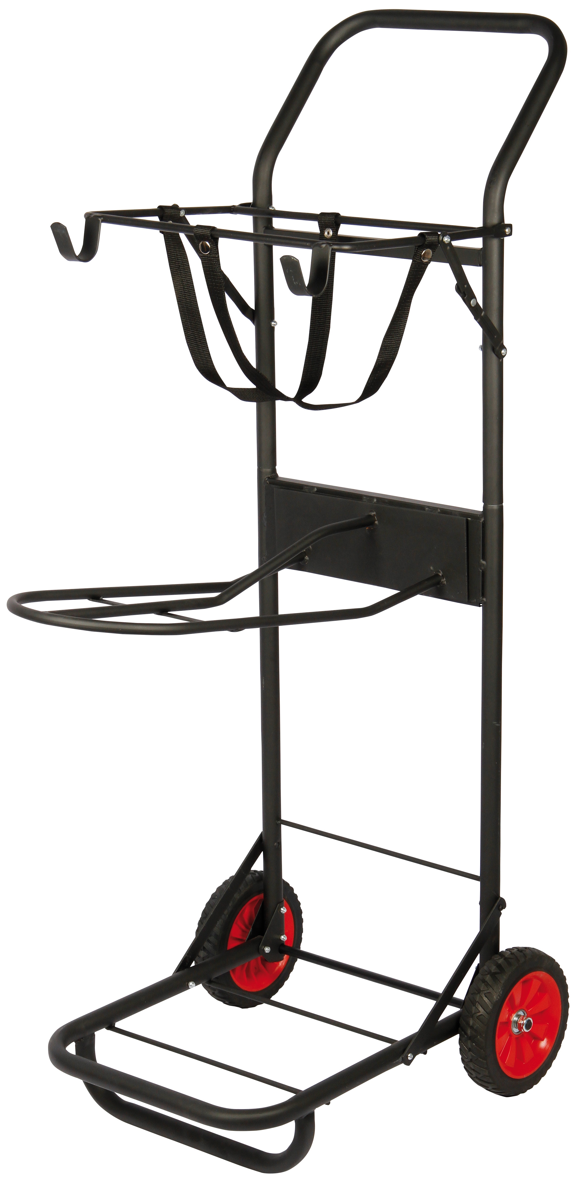 Opties Deze stalkruier is ideaal om uw zadel, hoofdstel en poetsspullen tot vlakbij het paard te rijden. Geen gesleep meer met dat zware zadel! U rijdt de stalkruier zo de zadelkamer in en hoeft de spullen er in principe niet eens af te halen, de kruier blijft stevig staan met een zadel erop! Plaats voor zadel, hoofdstel, halster etc. Er is plaats voor een poetsbox of poetstas in de bovenste houder.In de onderste houder is nog ruimte voor een open poetsbak. Indien je liever meer ruimte wilt voor je zadel, kun je de bovenste poetskisthouder (ook tijdelijk) eenvoudig verwijderen. 127 (hoogte)*77 (breedte)*48cm (lengte) Gepoedercoat frame (mat zwart). Afmetingen voor de poestkoffer 22.5*38cm
