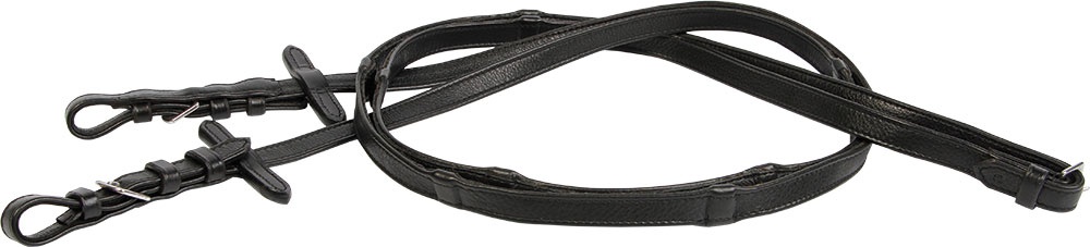 Teugels, super soft leder met lederen stops IN de teugels. Met nylon voering. Zeer soepele, dunne (15mm) teugels voor een extra "sensitive" contact. Afstand tussen de stops: 11cm. Verkrijgbaar in: Cob: 130cm Full: 135cm