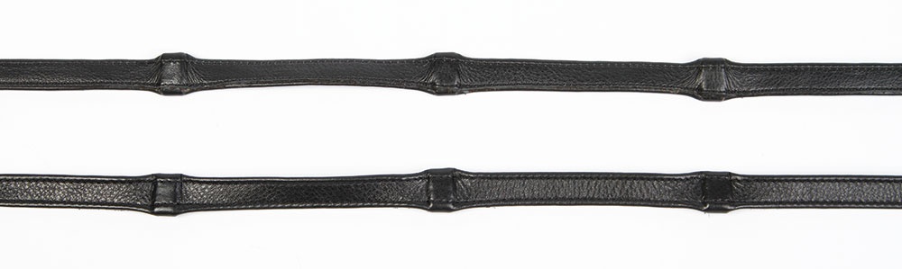 Teugels, super soft leder met lederen stops IN de teugels. Met nylon voering. Zeer soepele, dunne (15mm) teugels voor een extra "sensitive" contact. Afstand tussen de stops: 11cm. Verkrijgbaar in: Cob: 130cm Full: 135cm