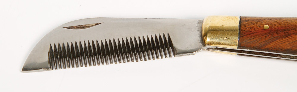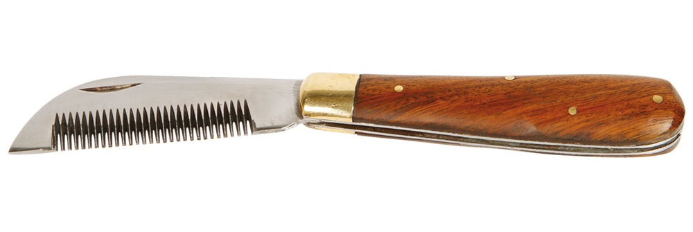 Praktisch mes van RVS voor het pijnloos uitdunnen van de manen. Mes is inklapbaar en heeft een houten handvat. Lengte uitgeklapt: 18cm