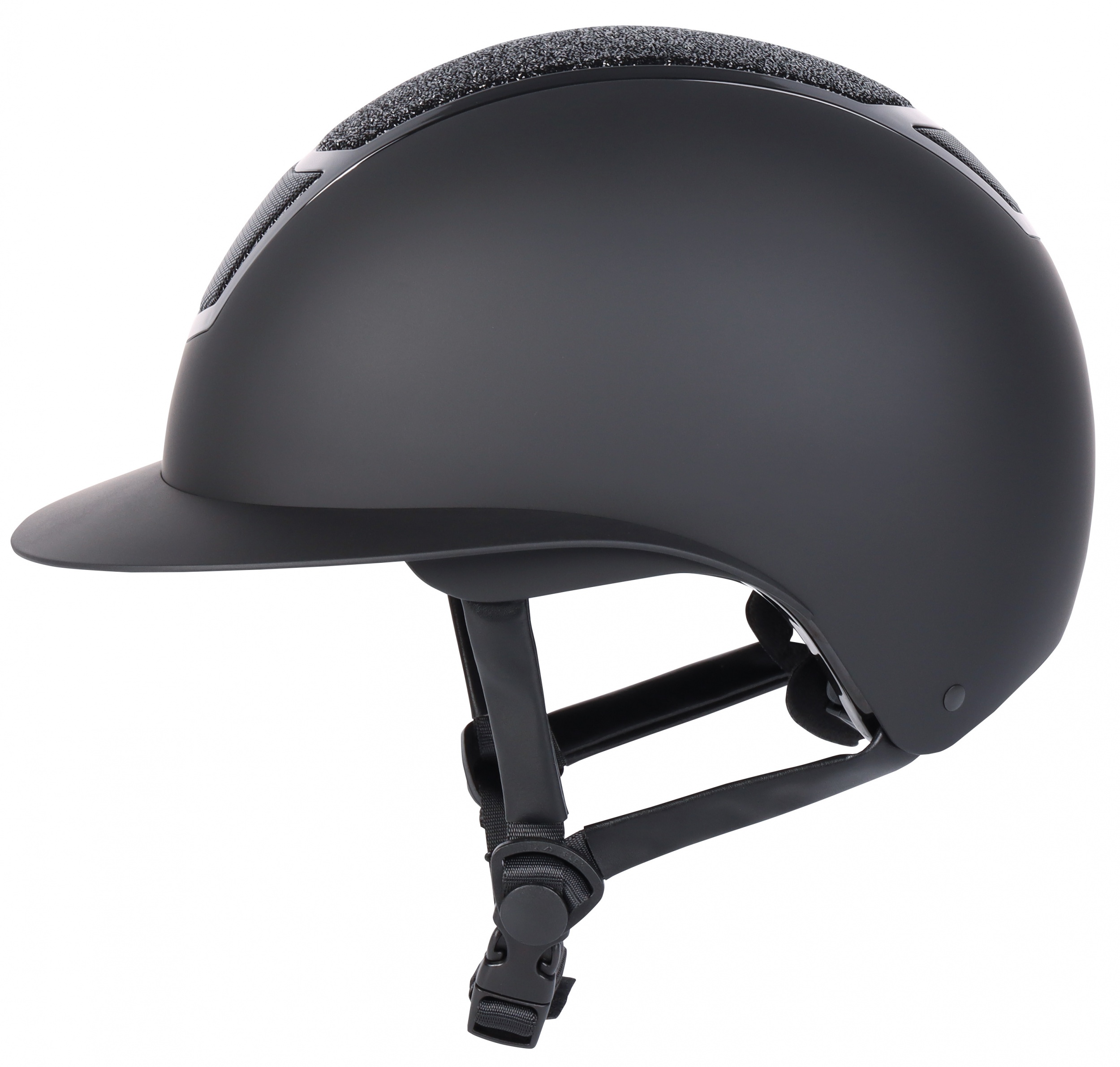 Opties Met een uitneembare en wasbare voering. Eenvoudig op maat te stellen door middel van een draaiknop. Tevens is de veiligheidscap voorzien van meerdere ventilatiesleuven. De buitenschaal heeft een matte afwerking en de middelste strook is royaal afgewerkt met glinsterende details. Dit model heeft een brede klep voor bescherming tegen de zon en regen. Voldoet aan de EN1384:2023 norm.