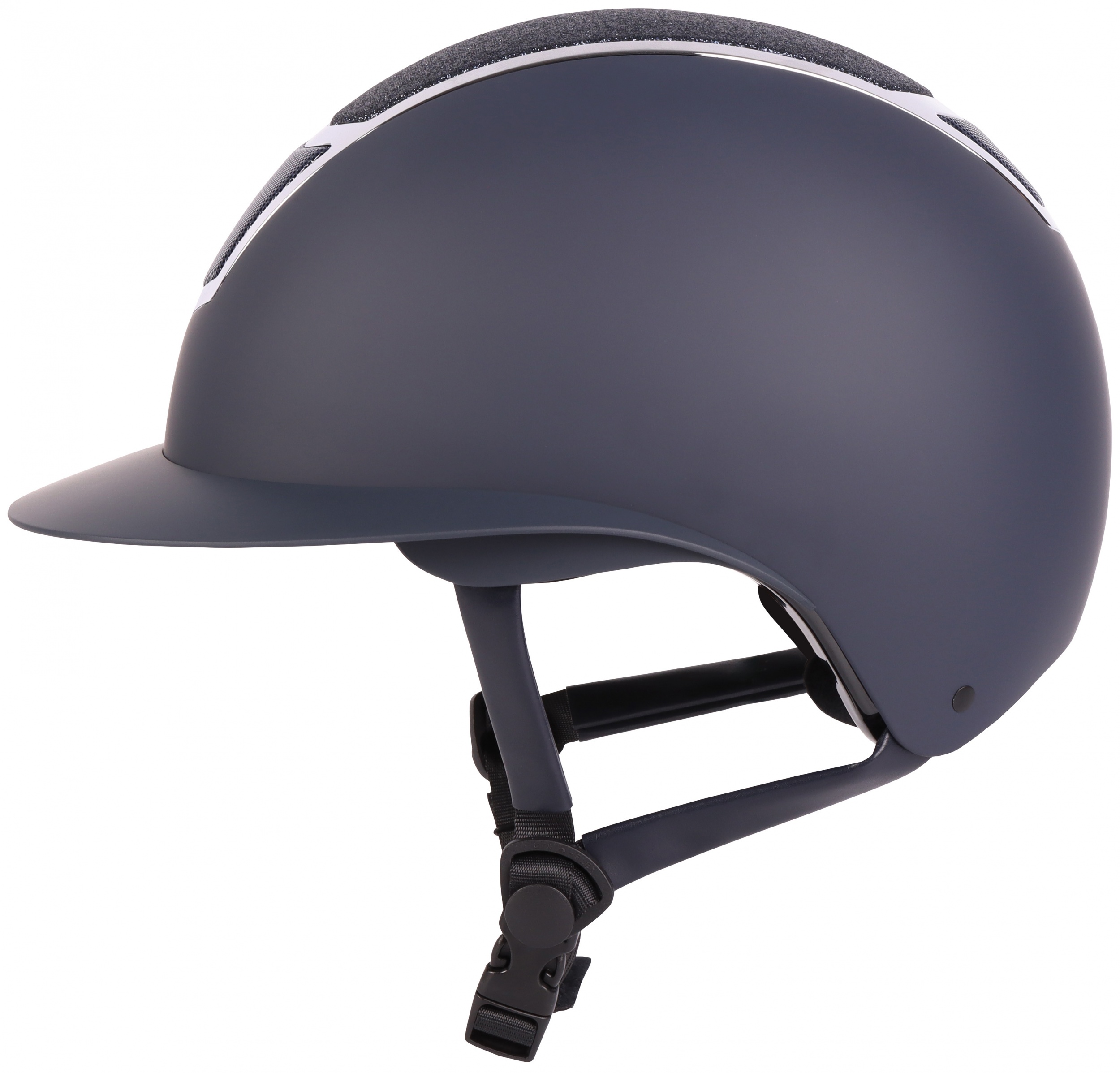 Met een uitneembare en wasbare voering. Eenvoudig op maat te stellen door middel van een draaiknop. Tevens is de veiligheidscap voorzien van meerdere ventilatiesleuven. De buitenschaal heeft een matte afwerking en de middelste strook is royaal afgewerkt met glinsterende details. Dit model heeft een brede klep voor bescherming tegen de zon en regen. Voldoet aan de EN1384:2023 norm.
