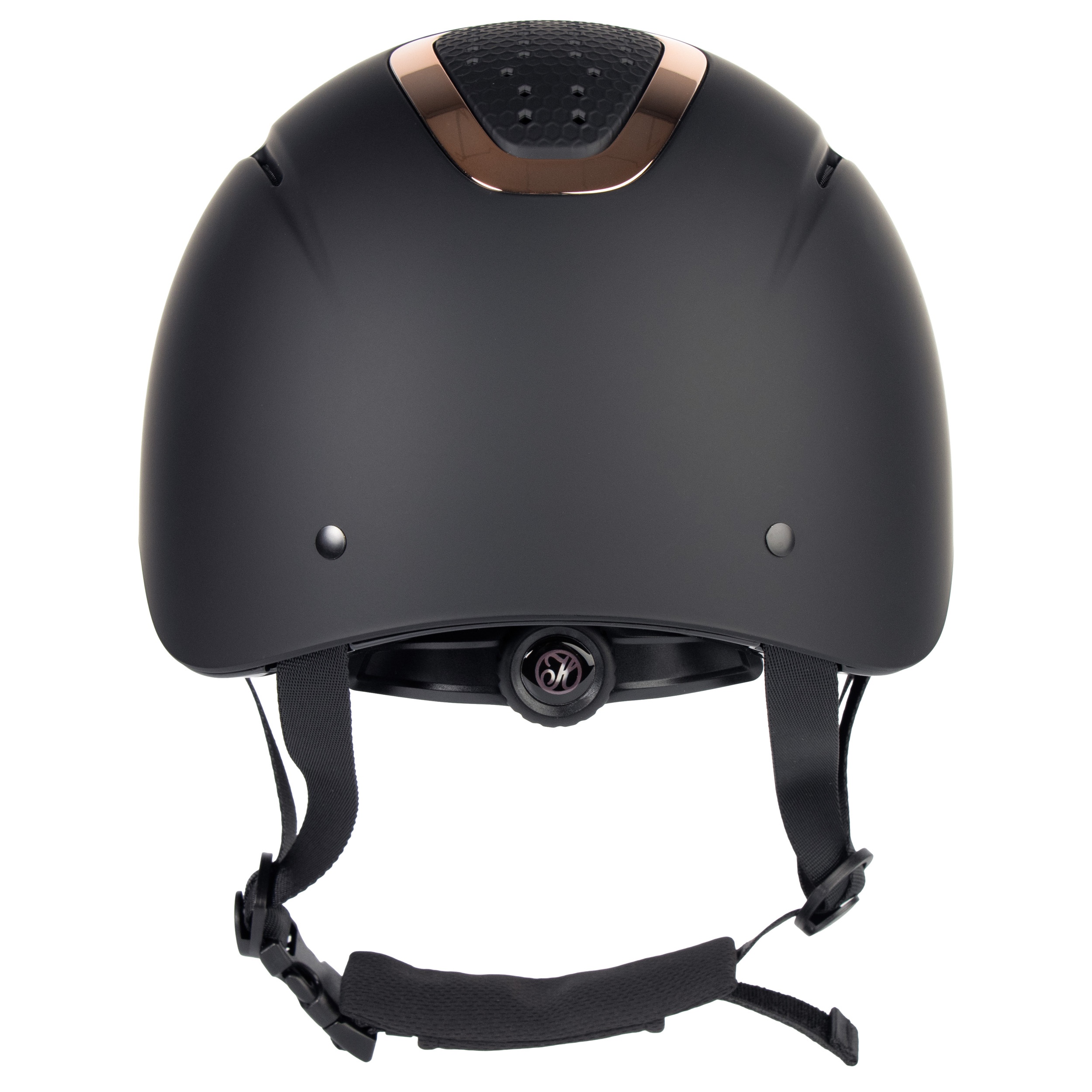 Opties Elegante veiligheidscap met luxe uitstraling. Voldoet aan norm EN1384:2023. Voorzien van een uitneembare en wasbare voering. Dankzij de draaiknop is de cap eenvoudig en nauwkeurig op maat te stellen. Meerdere ventilatiesleuven zorgen voor optimale luchtcirculatie. De buitenschaal heeft een matte finish, met geperforeerde delen tussen de twee frames voor extra ventilatie. Verkrijgbaar in: S (52ñ54cm) M (55ñ57cm) L (58ñ60cm)