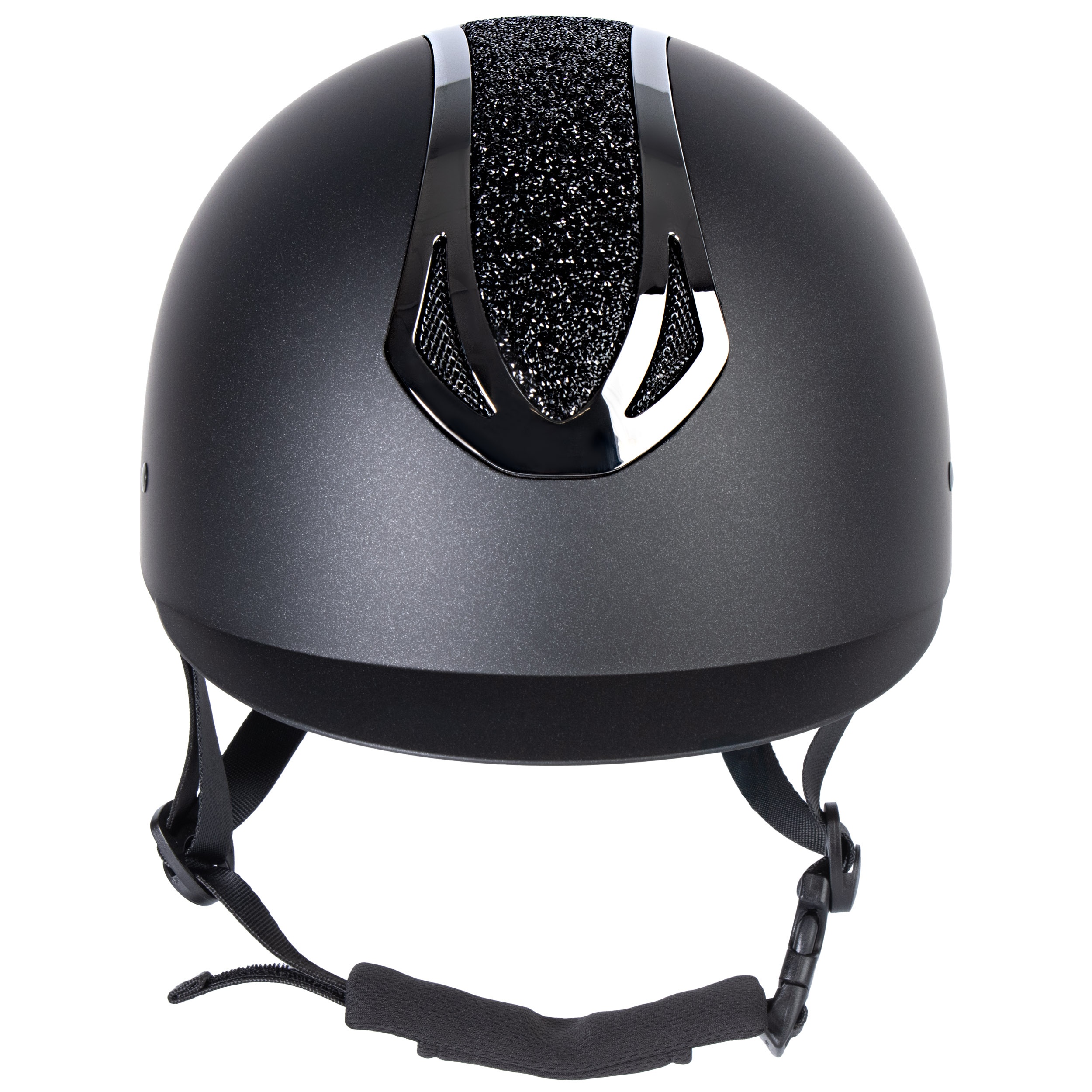 Stijlvolle veiligheidscap met luxe uitstraling. Voldoet aan norm EN1384:2023. Voorzien van een uitneembare en wasbare voering voor optimale hygiÎne. De sierstrook tussen het frame is rijkelijk bezet met fonkelende kristallen. Dankzij de draaiknop aan de achterzijde is de cap eenvoudig op maat te stellen. Meerdere ventilatiesleuven zorgen voor een optimale luchtcirculatie. Beschikbaar in de maten: XS (49ñ51cm) S (52ñ54cm) M (55ñ57cm) L (58ñ60cm) XL (61ñ63cm)
