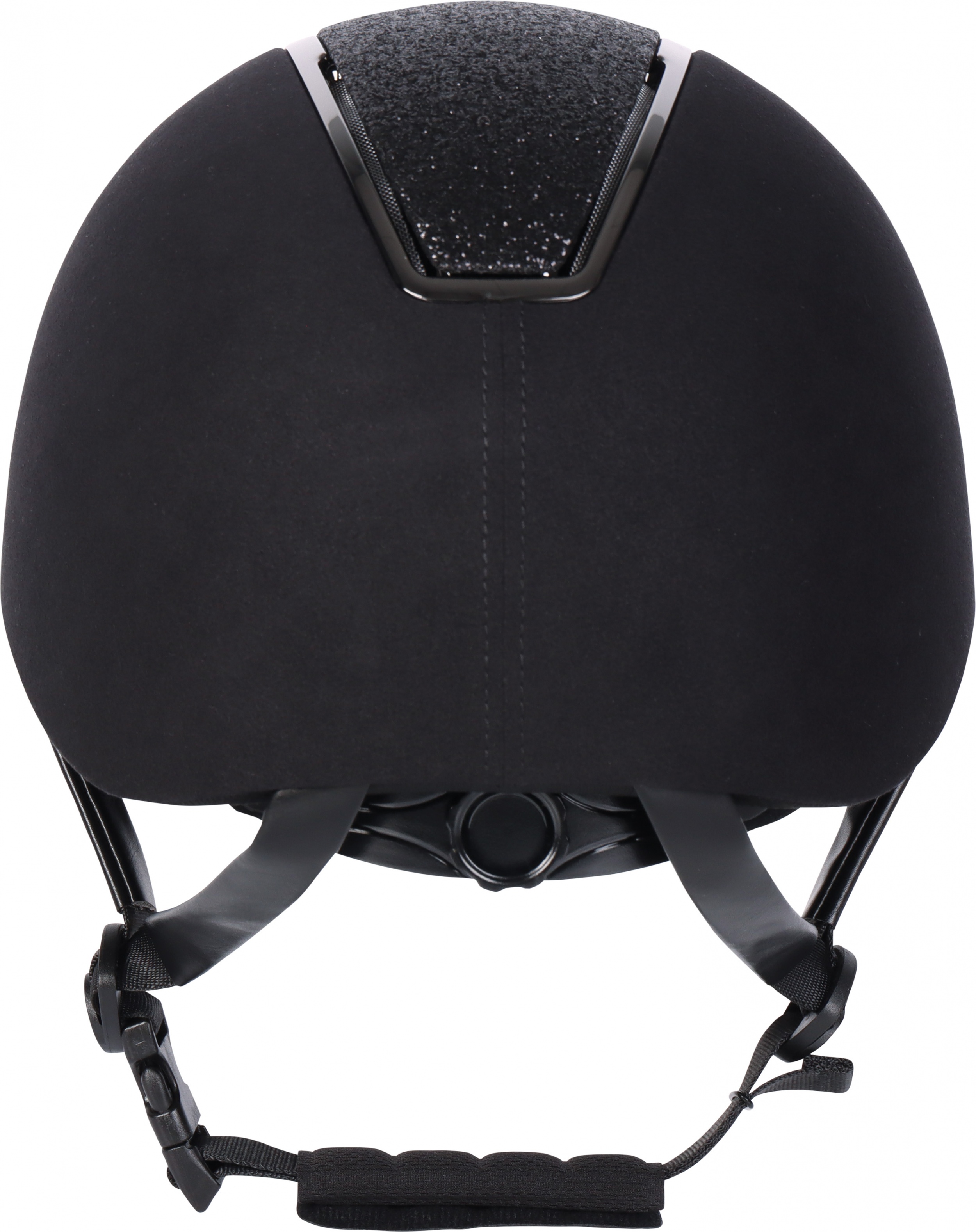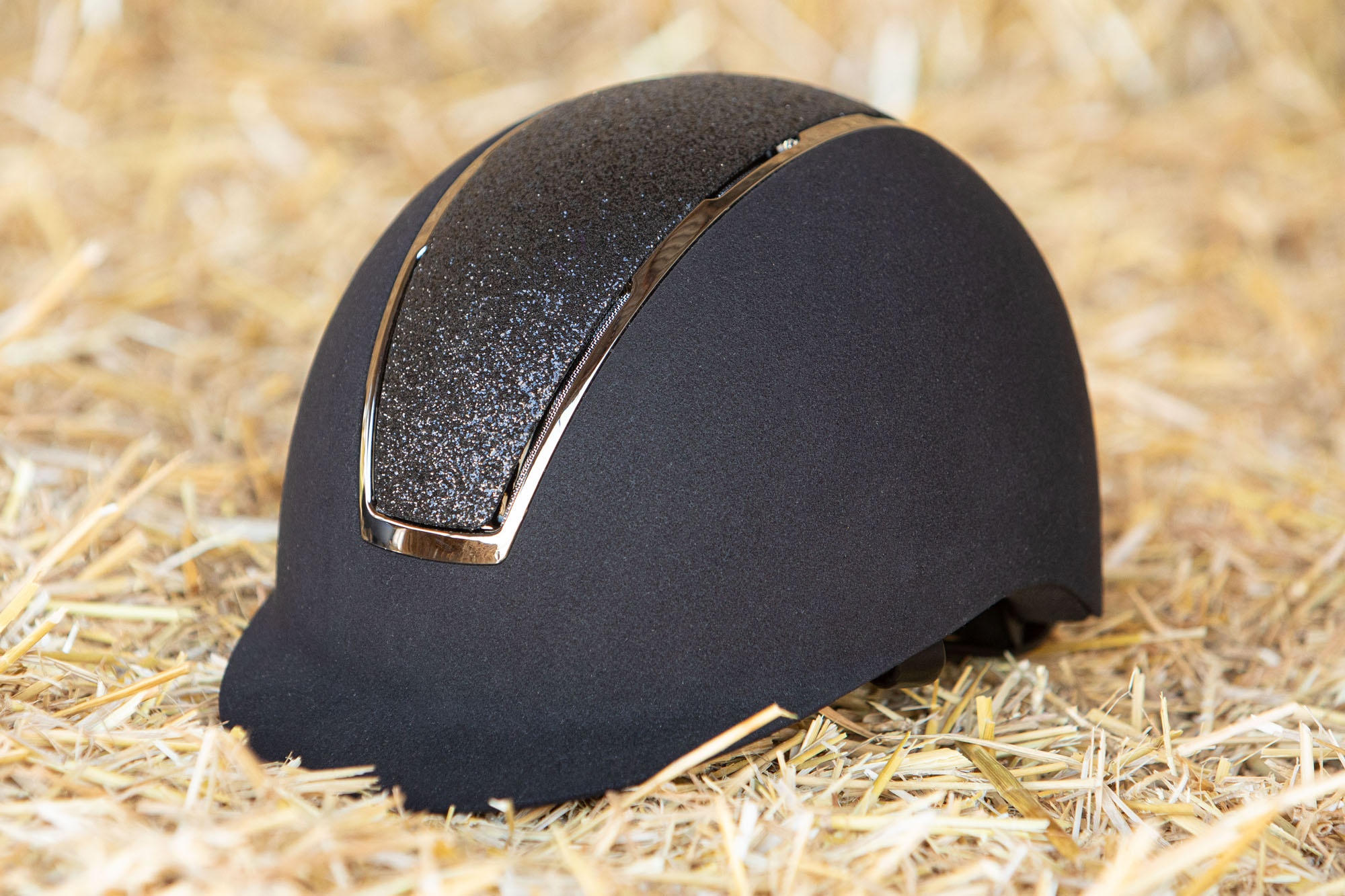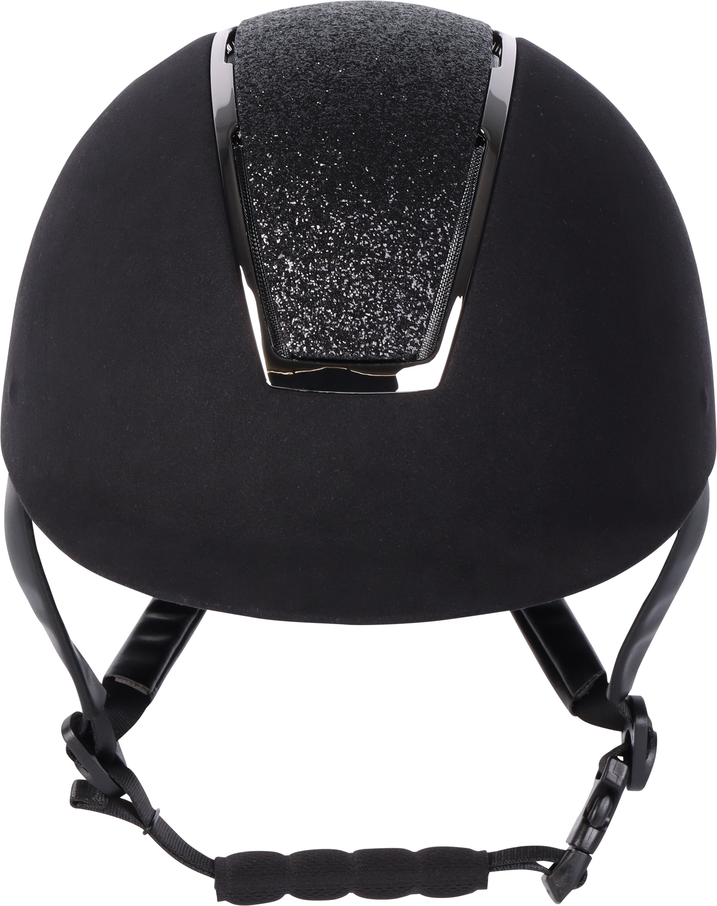 Chique veiligheidscap met een velours afwerking van de buitenschaal. De middenbaan is voorzien van prachtige glitters. Eenvoudig op maat te stellen door middel van de draaiknop. De veiligheidscap is voorzien van meerdere ventilatiesleuven en heeft een uitneembare en wasbare voering. Voldoet aan de volgende norm: EN1384:2023.