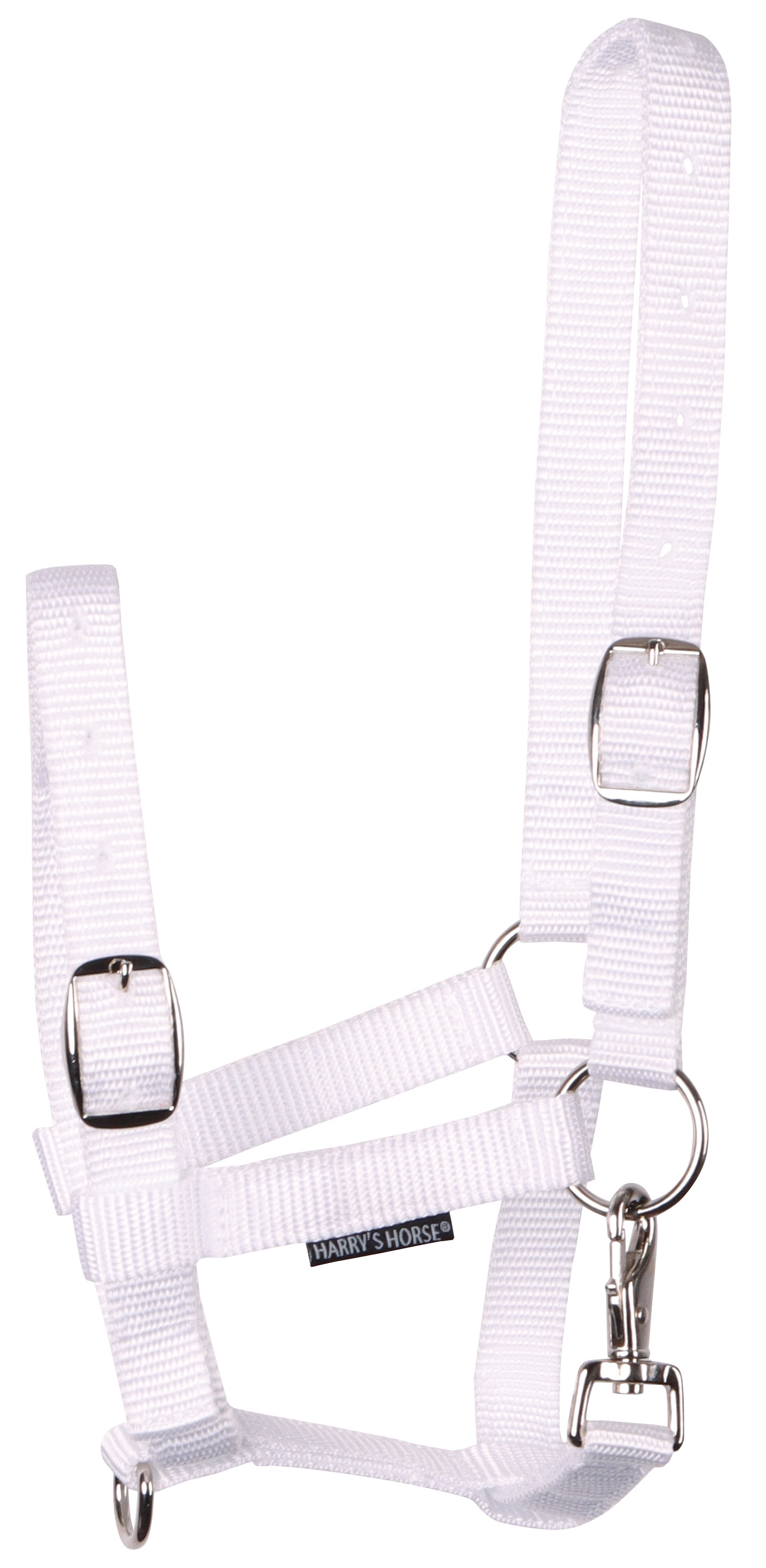 Veulenhalster met verstelbaar neus- en kopstuk. Eenvoudig om en af te doen door middel van een snelsluiting aan de keelriem. zilverkleurige fournituren van nikkel.