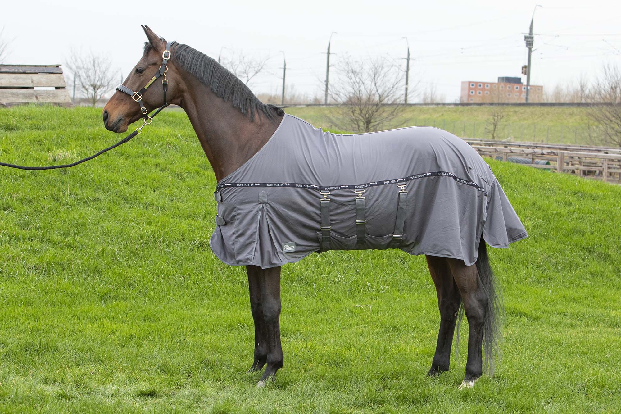 Mesh Pro deken te gebruiken als vliegendeken of cooler deken. Voorzien van een dubbele voorsluiting, brede buikflap met 3 sluitingen, extra brede staartflap, een staartlus en de borst is glad polyester gevoerd. Materiaal: 100% polyester.