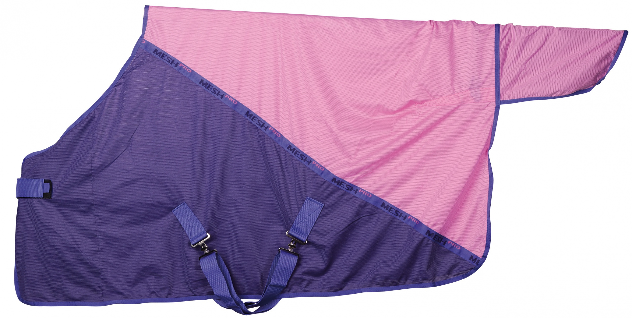 Two-tone meshstof paardendeken te gebruiken als vliegendeken of cooler deken, enkele klittenband voorsluiting, twee kruissingels, staartlus en de borst met polyester gevoerd om schuurplekken te voorkomen.