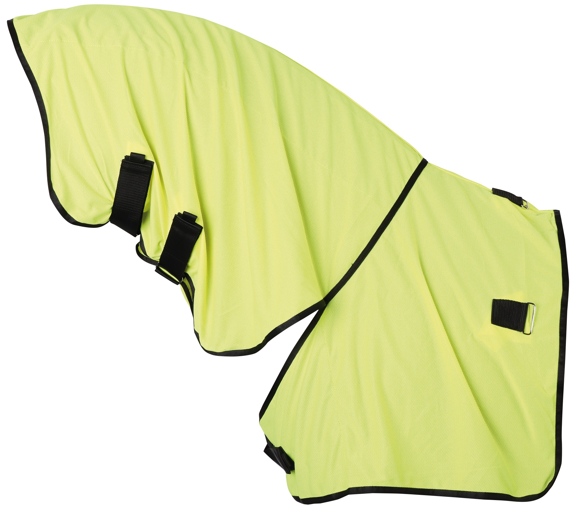 Mesh pro deken te gebruiken tijdens het rijden. Voorzien van een zadeluitsparing, staartflap en een afneembaar halsdeel. De deken is gemaakt van een reflecterende stof en heeft verder een reflecterende bies op de flank en op de staartflap. Materiaal: 100% polyester.
