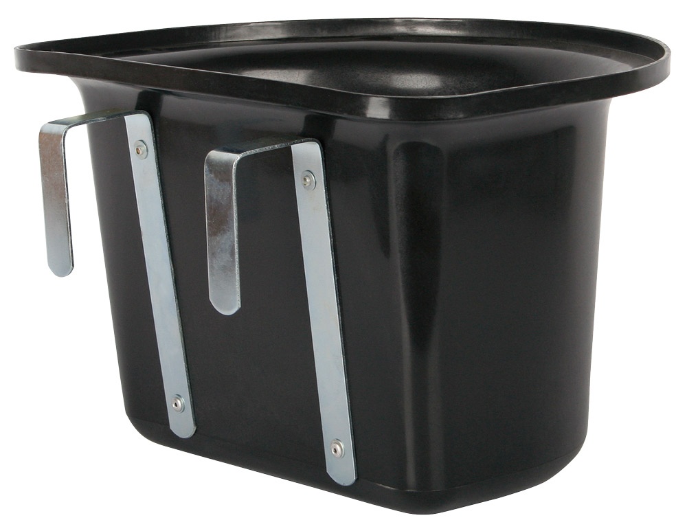 Kunststof voerbak met metalen beugels, makkelijk om mee te nemen of als uitneembak. Afmeting: 40cm breed, 25cm hoog en 32cm diep. Kleur: zwart