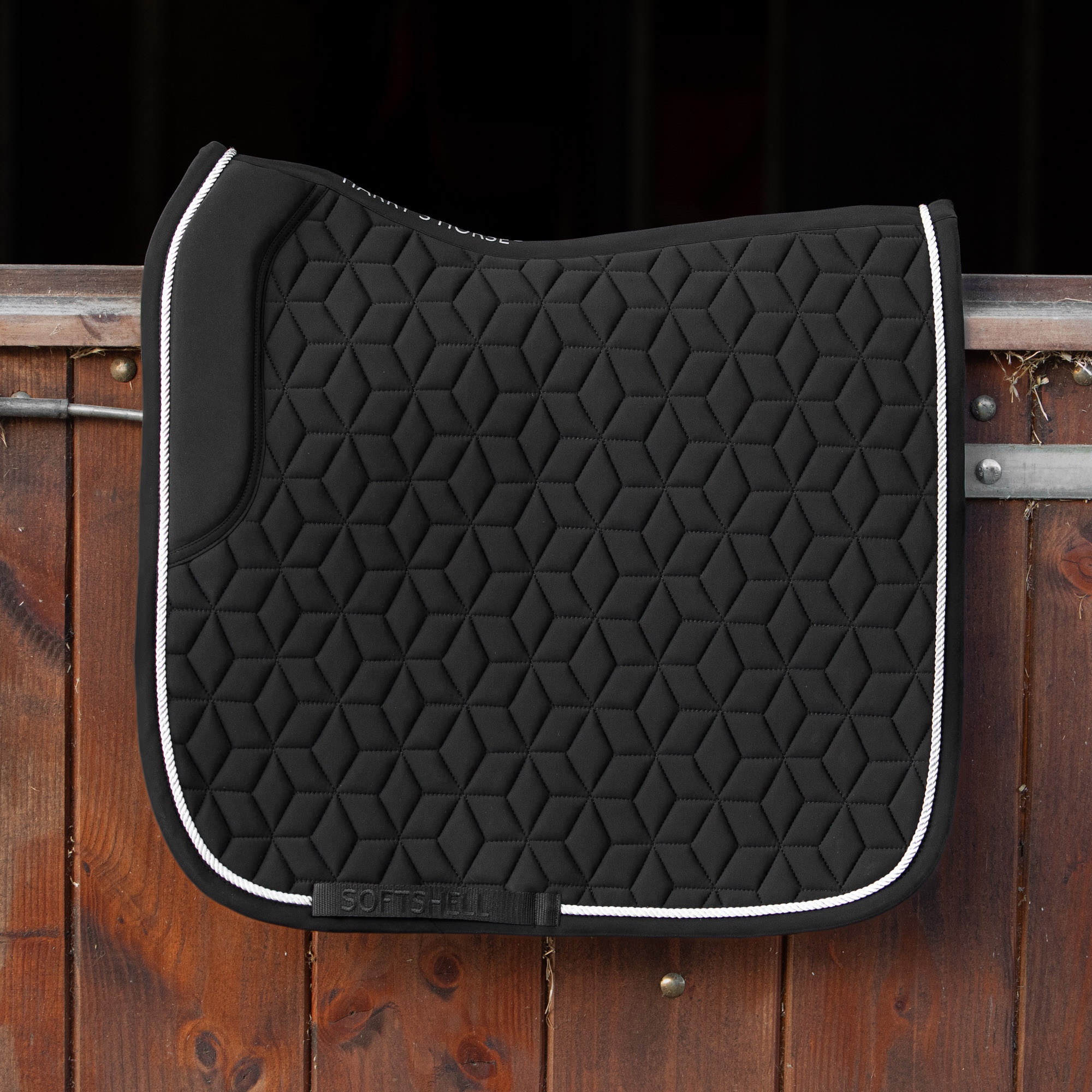 Zadeldek in mooi softshell materiaal en voorzien van een fraaie quilt. Het zadeldek heeft een sneldrogende en ademende mesh voering. Materiaal; 100% polyester en een vulling van foam en polyester.
