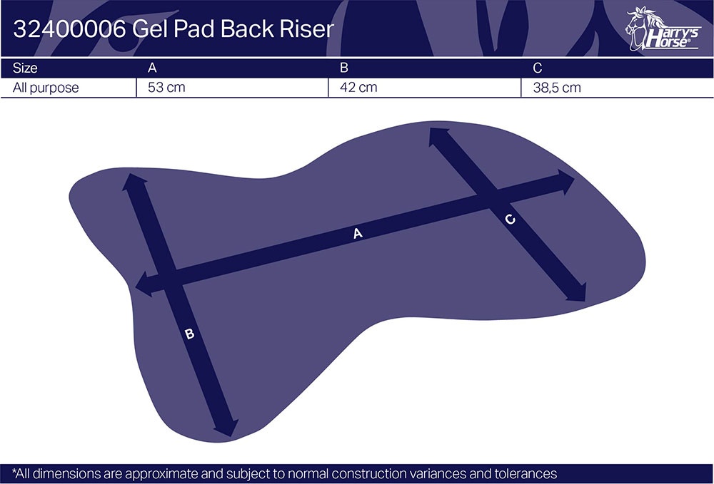De Zadelonderlegger Gel TPR Back Riser is een anatomisch gevormde gel pad met perforatie voor optimale luchtdoorlating. Anti-slip. Erg zacht en comfortabel met hoge schokabsorberende eigenschappen. Ondersteunend voor paarden met rugproblemen en verlicht druk. Deze gel pad past onder alle type zadels en kan rechtstreeks op de paardenrug gebruikt worden. Is eventueel te reinigen met koud water. Lengte 53 cm. Is eventueel kleiner te knippen (48cm). Materiaal: TPR (100% Thermoplastic rubber)