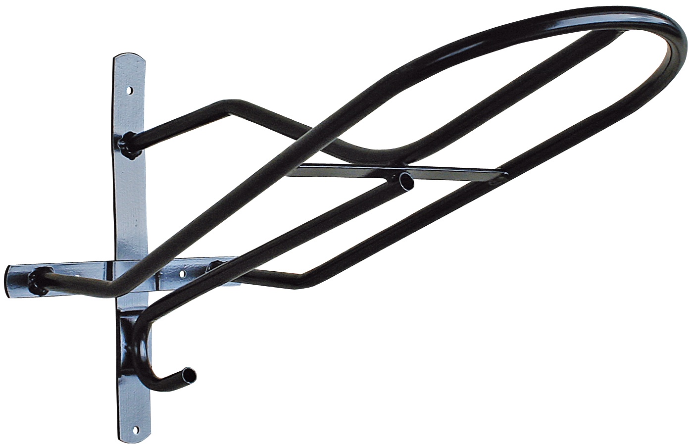 Voor ondersteuning van het gehele zadel. Extra haak voor ophangen van bijv. hoofdstel. Bevestiging d.m.v. schroeven (bijgeleverd). Lengte: 61cm Materiaal: geplastificeerd metaal