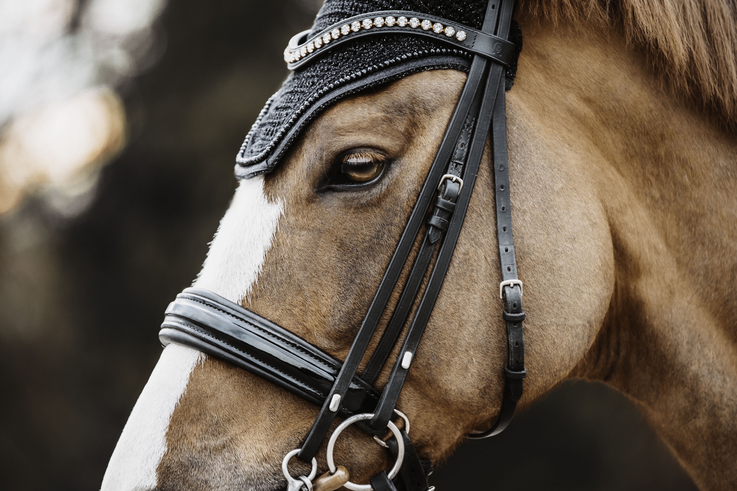 Dit Fly Veil Glitter Band is een combinatie van de moderne Amerikaanse look en Kentucky Horsewear’s product expertise. Dit oornetje beschermt de oren van het paard tegen vliegen tijdens het rijden. Er werd geen zichtbaar logo op geborduurd waardoor de ruiter of sponsor zijn eigen logo kan plaatsen.