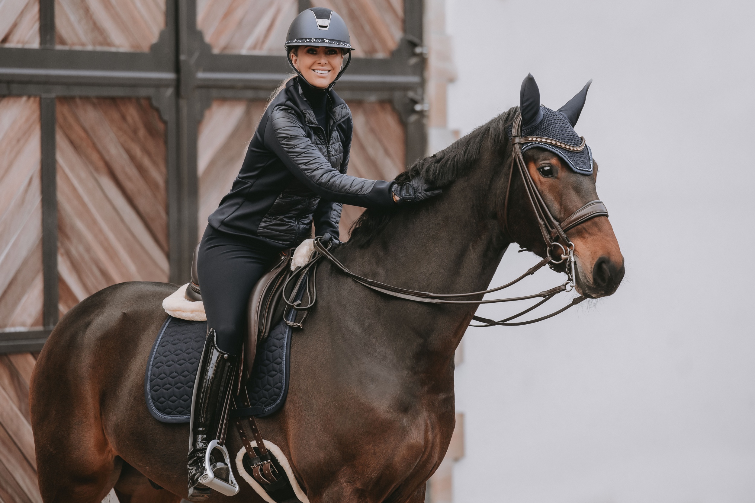 Dit Fly Veil Glitter Band is een combinatie van de moderne Amerikaanse look en Kentucky Horsewear’s product expertise. Dit oornetje beschermt de oren van het paard tegen vliegen tijdens het rijden. Er werd geen zichtbaar logo op geborduurd waardoor de ruiter of sponsor zijn eigen logo kan plaatsen.