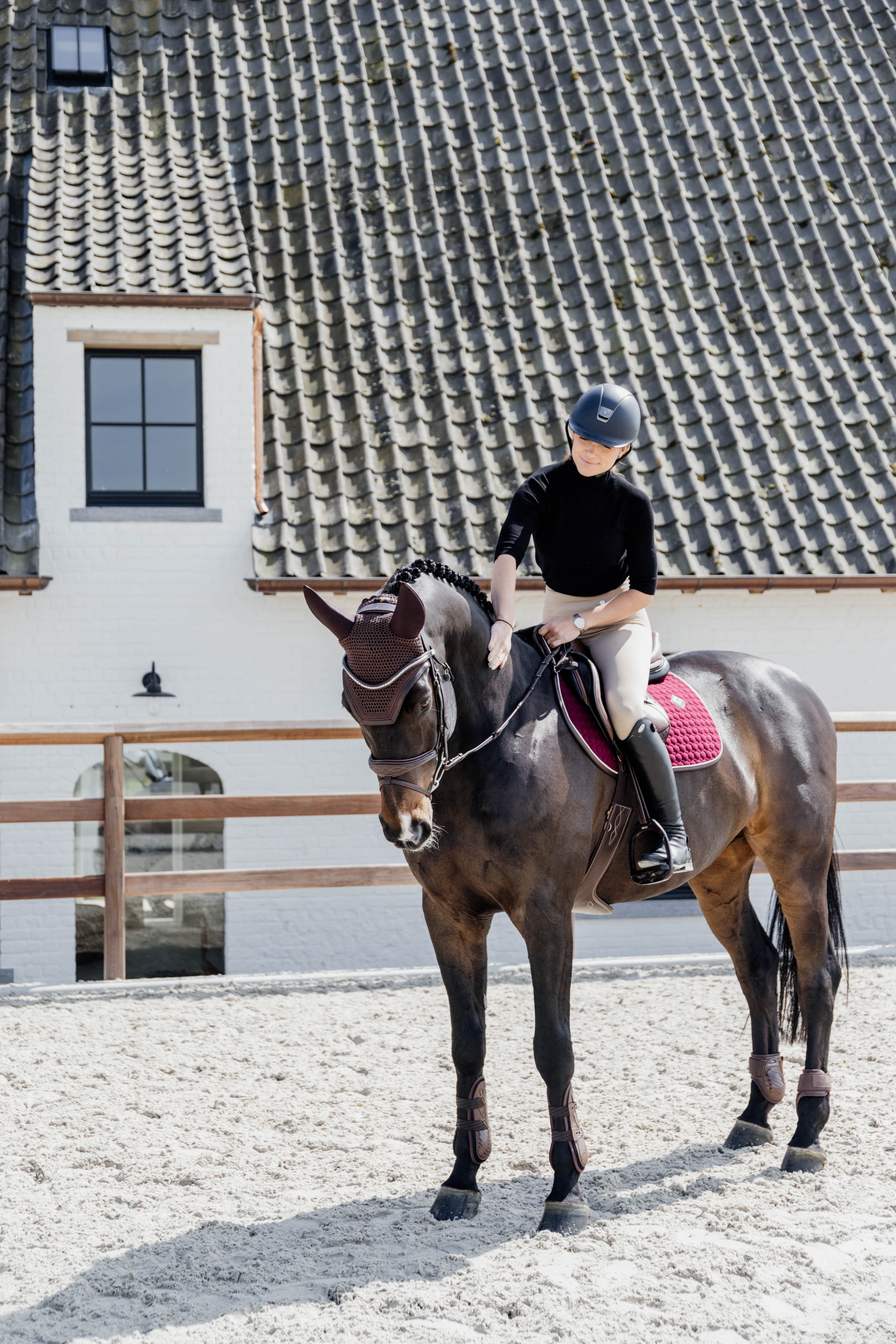 Dit oornetje beschermt de oren van het paard tegen vliegen en geluid tijdens het rijden.