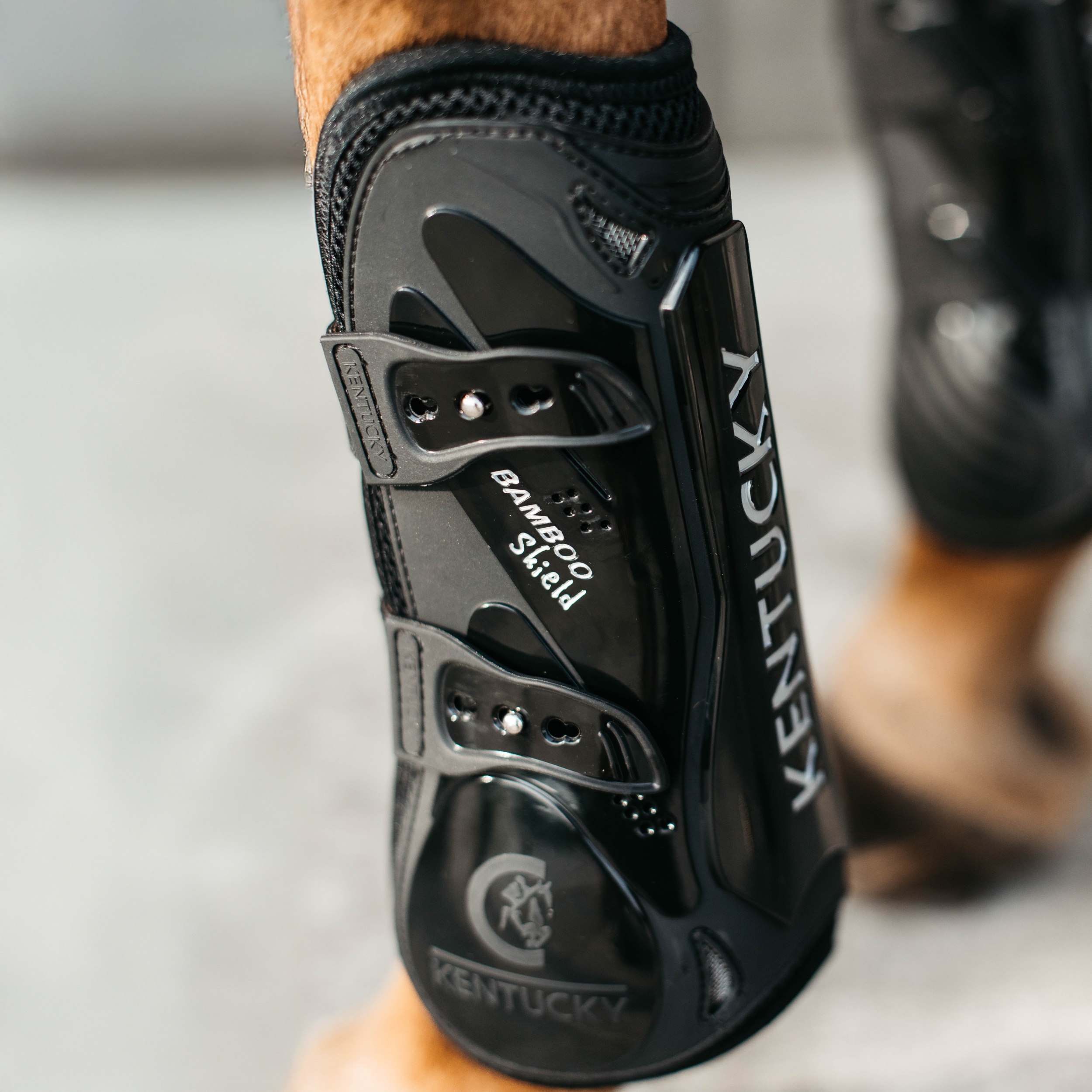 Onze Bamboe Shild peesbeschermers zijn gemaakt met onze zeer ademende en bekende 3D Spacer-voering die wordt gebruikt in onze brushing boots 3D spacer- en dekens. Ze hebben een robuuste buiten kader van lichtgewicht maar sterke TPU- kader, met een extra bamboeschild in het peesgebied voor optimale bescherming tegen elke impact en penetratie van scherpe voorwerpen en is ook antibacterieel.