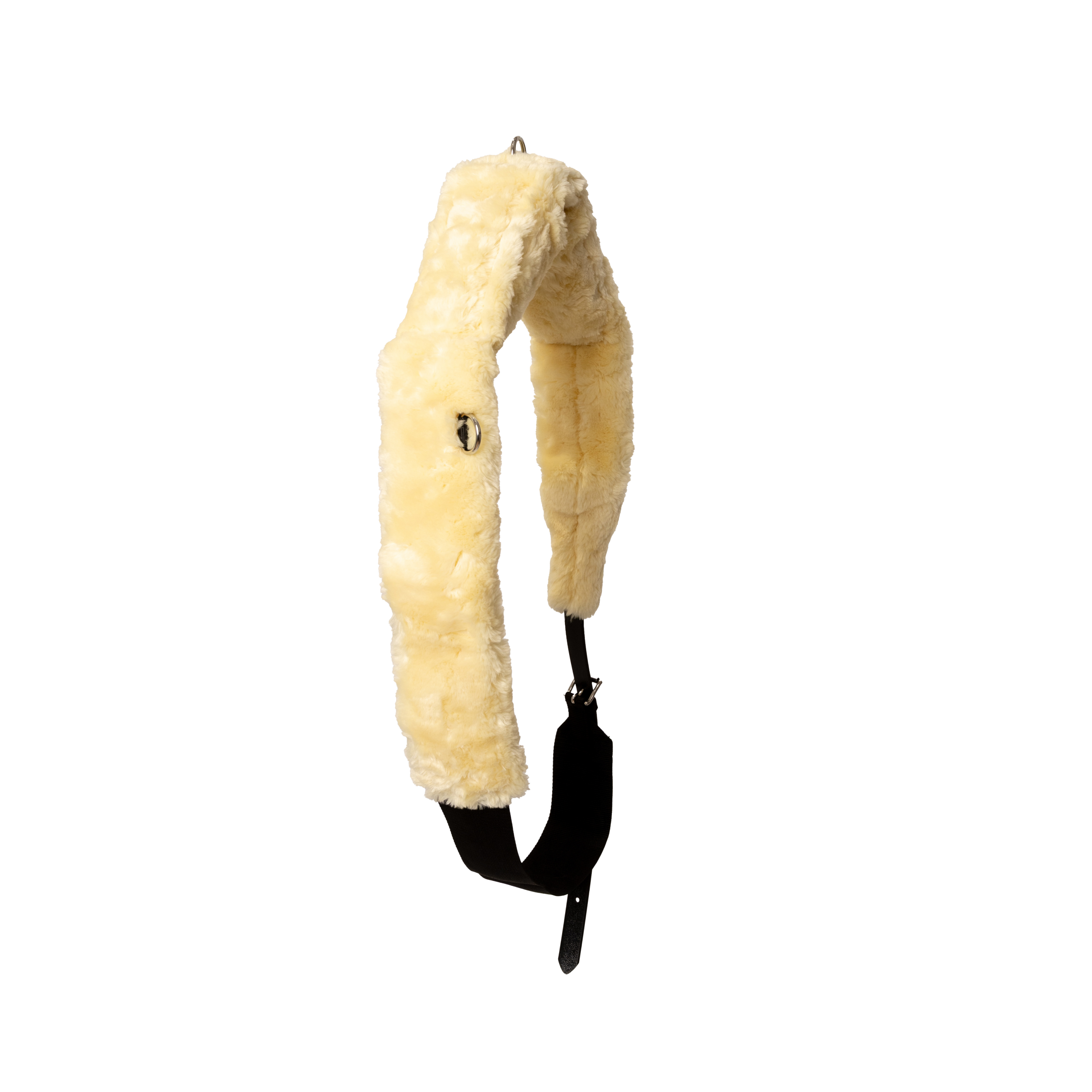 De Nylon Longeersingel met Schapenvacht is ontworpen om over het deken van je paard te gebruiken in de stapmolen. De bovenkant is bedekt met artificiële schapenvacht om de huid van je paard te beschermen. De singel biedt een stevige pasvorm voor elke deken en laat de schouders vrij door het deken te openen, waardoor schuurplekken worden voorkomen. Met de Nylon Longeersingel hoef je niet telkens van deken te wisselen, wat tijd en moeite bespaart. De singel kan ook worden gebruikt om je paard te longeren. Dankzij de drie ringen bovenop kun je eenvoudig je trainingshulpmiddelen bevestigen. Het ontwerp met een enkele riem maakt het gebruik snel en eenvoudig, terwijl de verstelbare pasvorm een bereik van 35 cm biedt.
