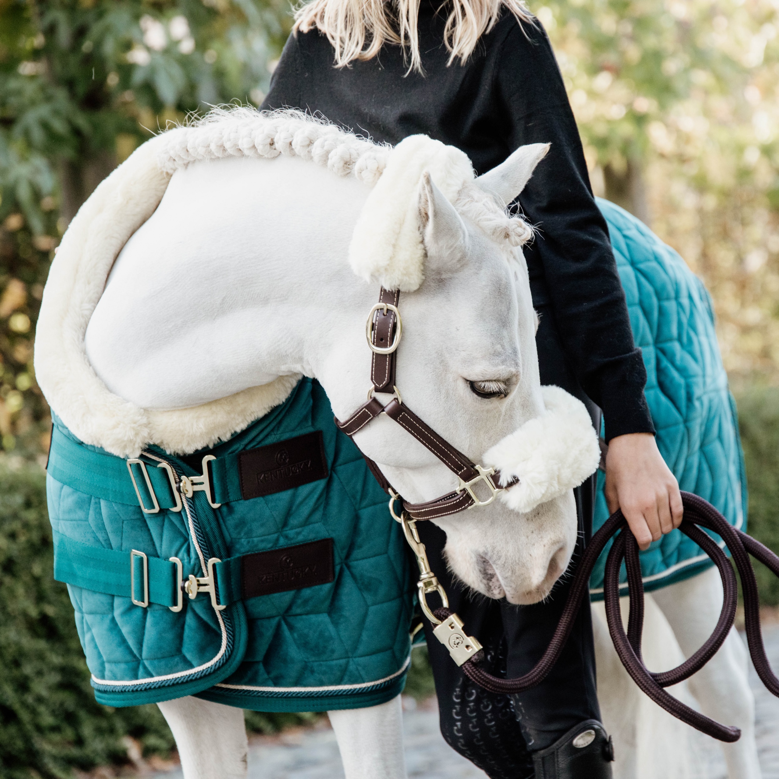 Met de Show Rug Velvet zal je zeker opvallen op stal. Het deken heeft een 160g vulling en kan tijdens de winter perfect dienen als staldeken thuis of op concours. De buitenkant van het deken heeft een zachte en chique velvet stof. Het stijlvolle kubus patroon maakt het bovendien moeilijker om het deken te scheuren. Het deken is gevoerd met artificiële konijnenvacht, wat schuurplekken voorkomt. Daarnaast creëert het kleine lucht vakjes die een isolerende laag rond je paard vormen waardoor hij extra warm blijft.