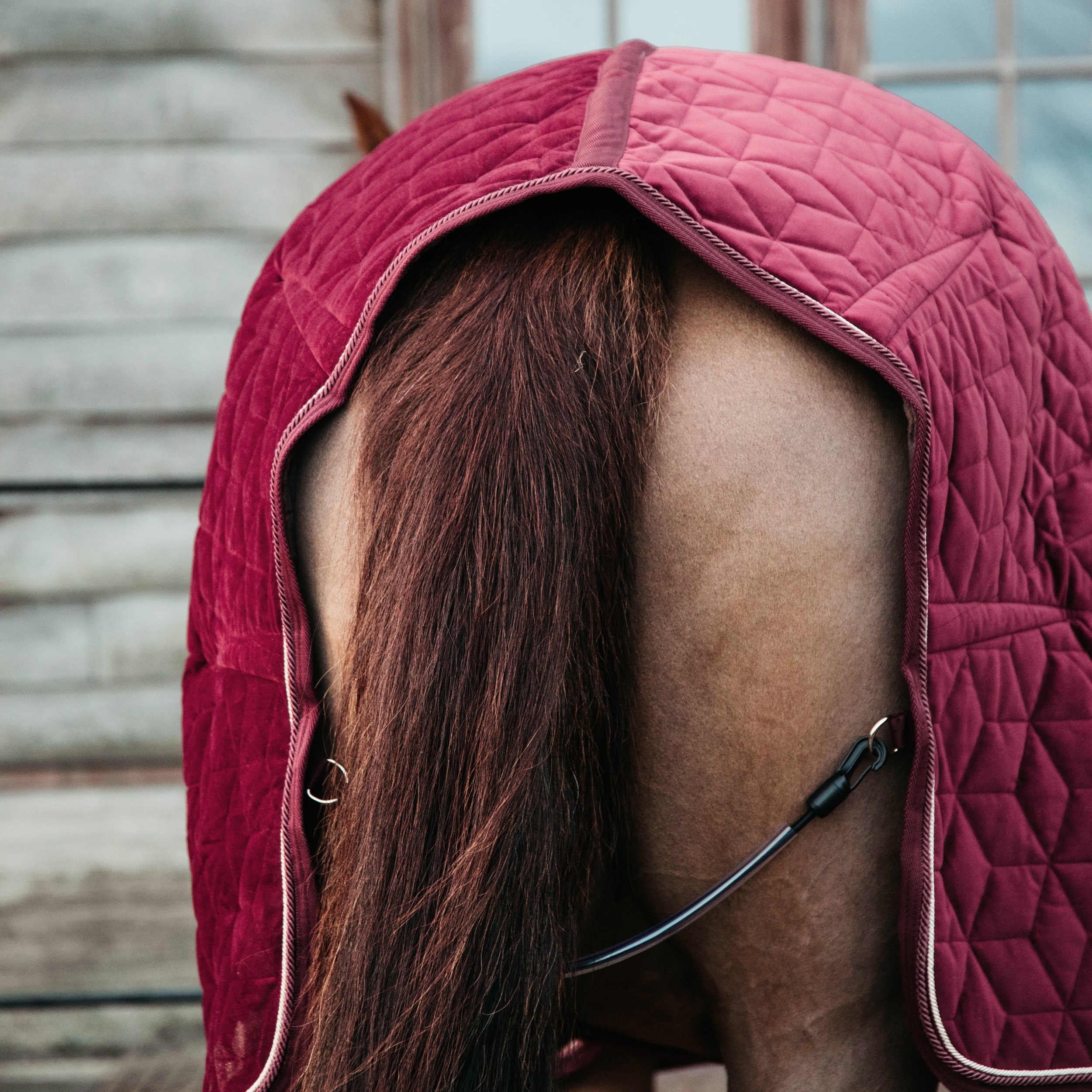 Met de Show Rug Velvet zal je zeker opvallen op stal. Het deken heeft een 160g vulling en kan tijdens de winter perfect dienen als staldeken thuis of op concours. De buitenkant van het deken heeft een zachte en chique velvet stof. Het stijlvolle kubus patroon maakt het bovendien moeilijker om het deken te scheuren. Het deken is gevoerd met artificiële konijnenvacht, wat schuurplekken voorkomt. Daarnaast creëert het kleine lucht vakjes die een isolerende laag rond je paard vormen waardoor hij extra warm blijft.