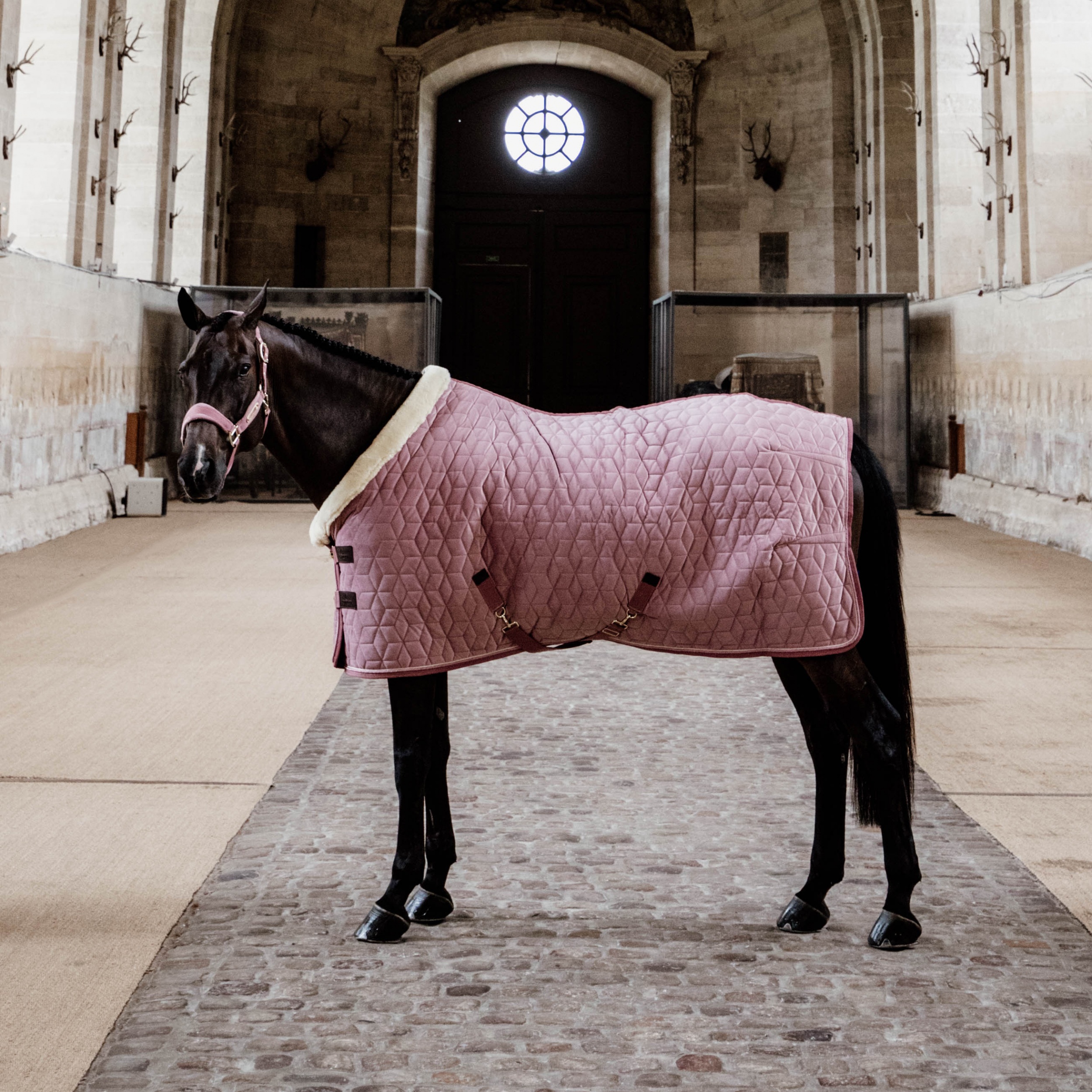 Met de Show Rug Velvet zal je zeker opvallen op stal. Het deken heeft een 160g vulling en kan tijdens de winter perfect dienen als staldeken thuis of op concours. De buitenkant van het deken heeft een zachte en chique velvet stof. Het stijlvolle kubus patroon maakt het bovendien moeilijker om het deken te scheuren. Het deken is gevoerd met artificiële konijnenvacht, wat schuurplekken voorkomt. Daarnaast creëert het kleine lucht vakjes die een isolerende laag rond je paard vormen waardoor hij extra warm blijft.