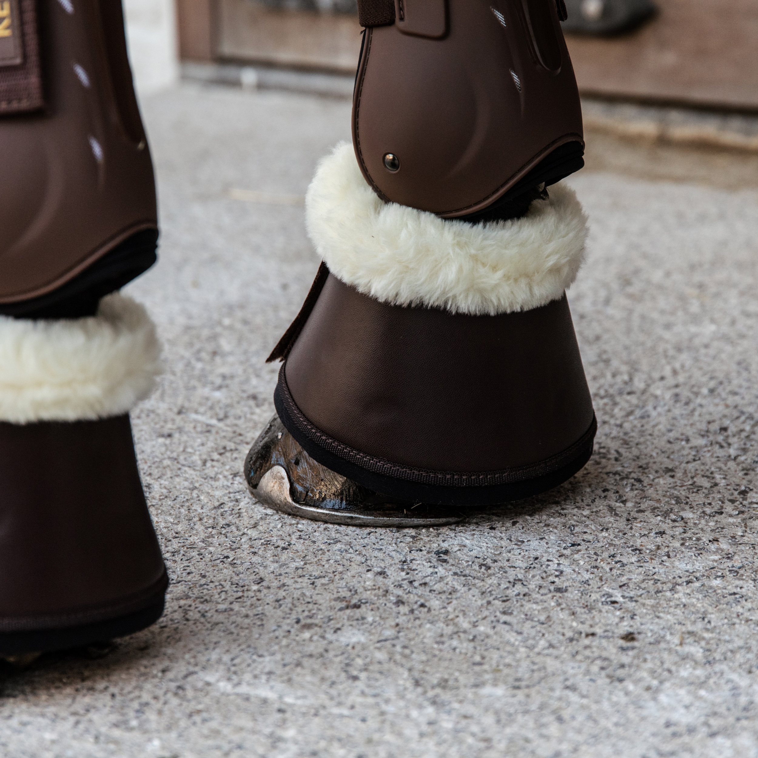 De Kentucky Horsewear lederen springschoenen met wol bieden een uitstekende schok absorptie en maximale bescherming. Ze bieden bescherming tegen wonden die kunnen veroorzaakt worden door het overhalen. De springschoenen zijn zeer sterk, soepel en comfortabel en hebben een perfecte pasvorm. Ze zijn gemaakt van sterk, 100% waterdicht PVC leder. Ze zijn geschikt voor elke discipline. De artificiële wollen rand is ideaal voor paarden met een gevoelige huid.