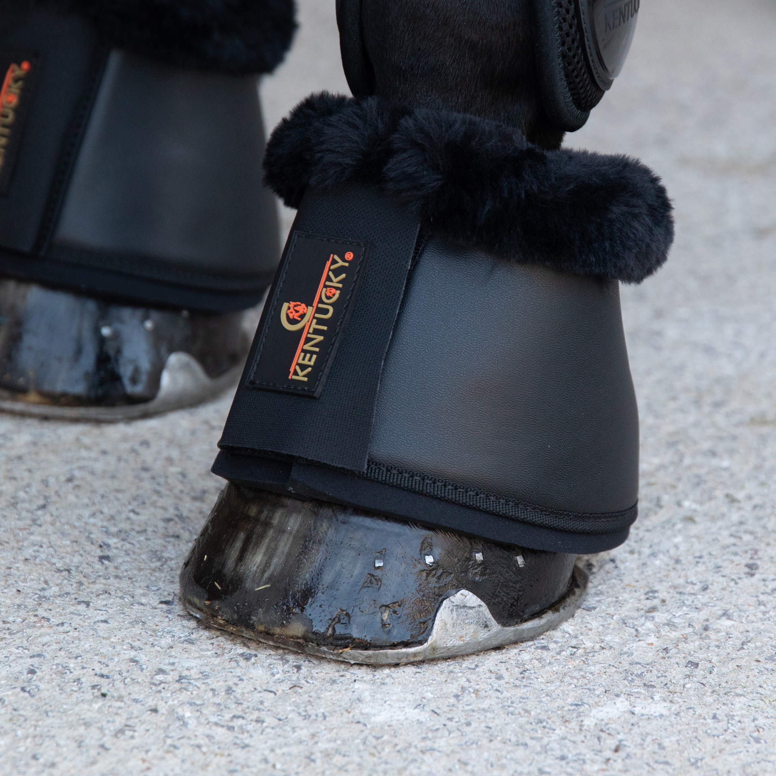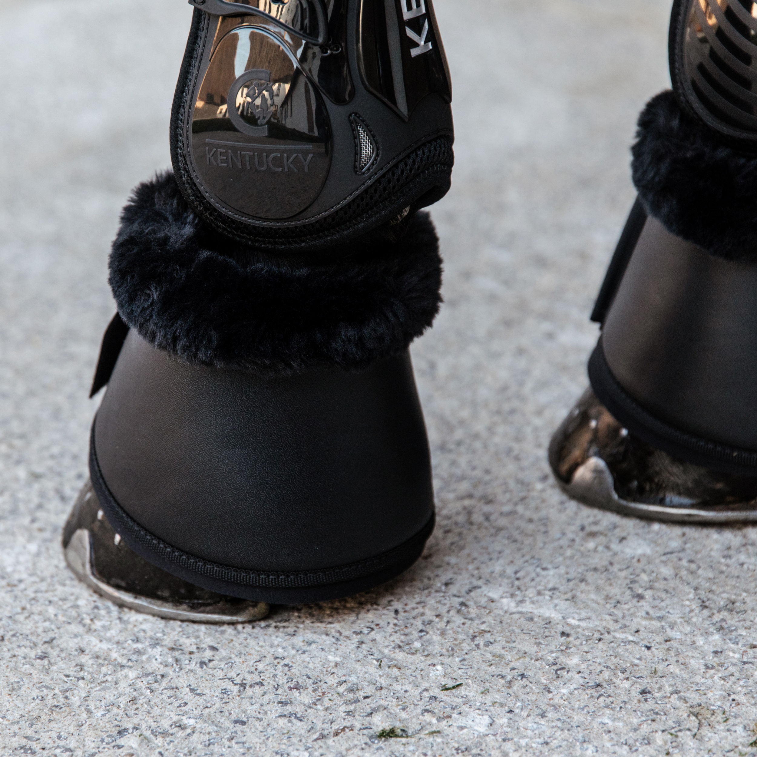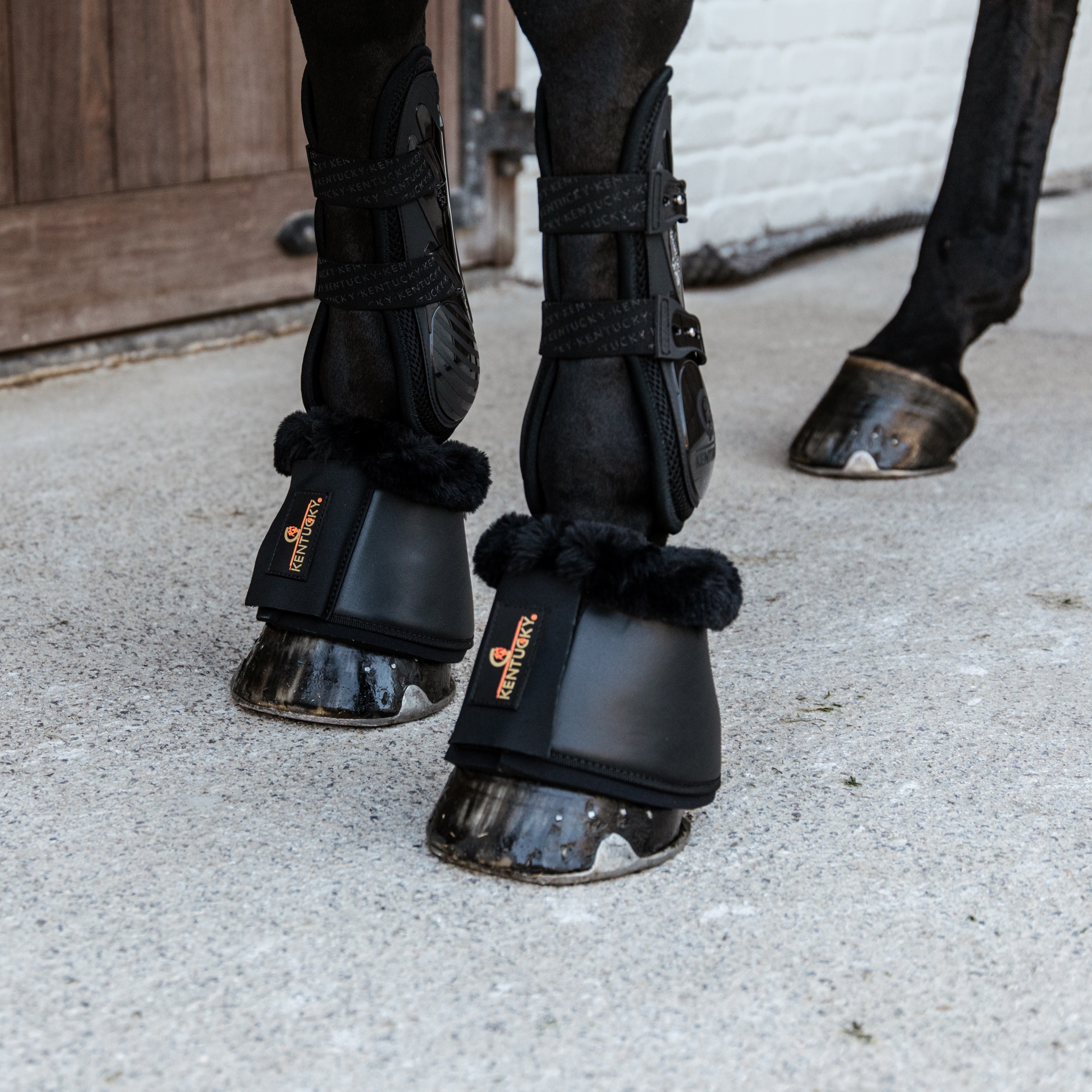 De Kentucky Horsewear lederen springschoenen met wol bieden een uitstekende schok absorptie en maximale bescherming. Ze bieden bescherming tegen wonden die kunnen veroorzaakt worden door het overhalen. De springschoenen zijn zeer sterk, soepel en comfortabel en hebben een perfecte pasvorm. Ze zijn gemaakt van sterk, 100% waterdicht PVC leder. Ze zijn geschikt voor elke discipline. De artificiële wollen rand is ideaal voor paarden met een gevoelige huid.