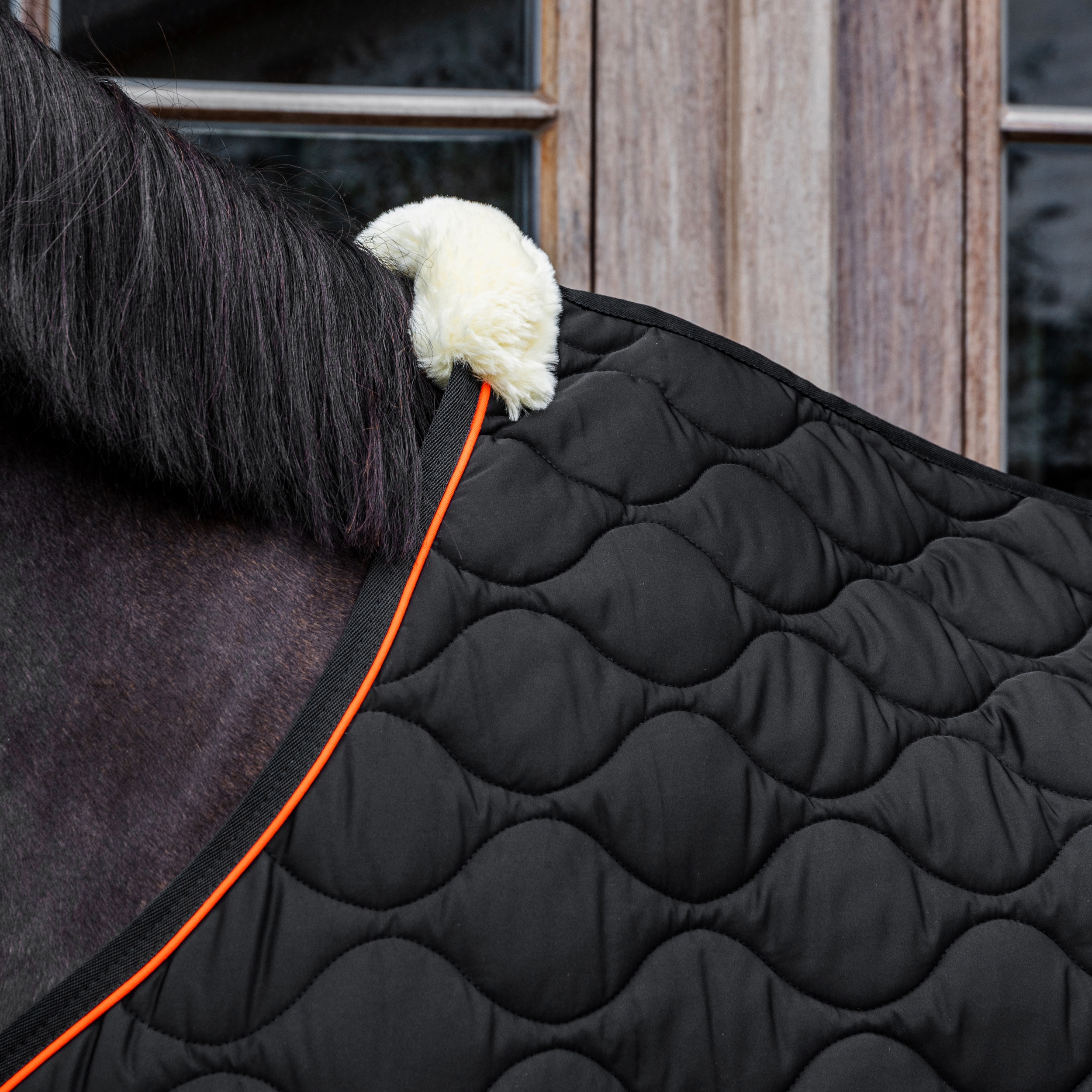 Dankzij de doordachte vorm heeft dit deken een betere pasvorm voor het paard. Het sluit met 2 borstsluitingen en 2 kruissingels. De schoft is beschermd met een kunstschaapsvacht.