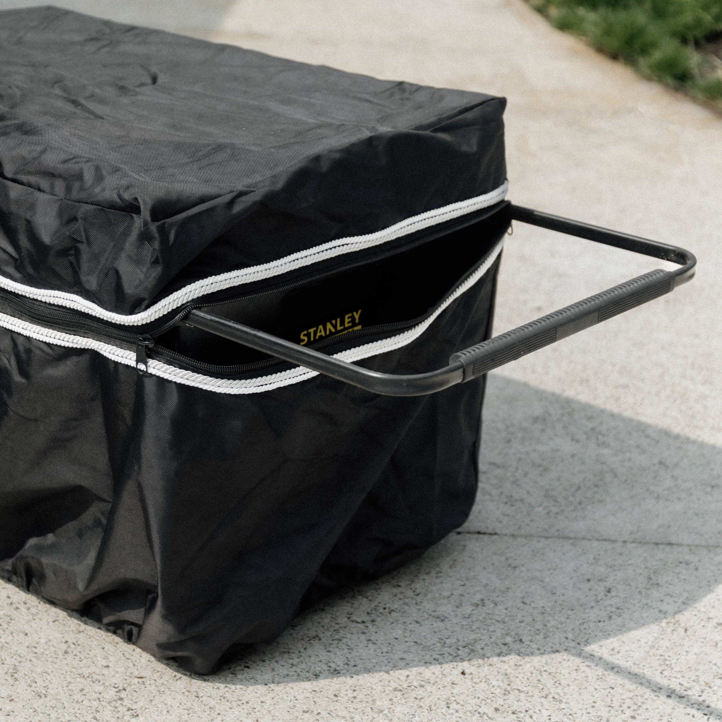 Deze hoes is perfect om je Stanley box te beschermen tegen krassen, stof en andere mogelijke beschadigingen. Hij is heel eenvoudig aan te brengen, omdat de hoes geen bodem heeft. Eenmaal aangebracht, kun je de bovenkant van de box bereiken door eenvoudig de rits te openen die helemaal rond de box loopt. Zelfs met de hoes eromheen kun je de handgreep van de box gebruiken. Personaliseer je Stanley Box Cover door je eigen logo erop te borduren. Creëer een verbluffende look met onze bijpassende stalgordijn en stalbeschermer