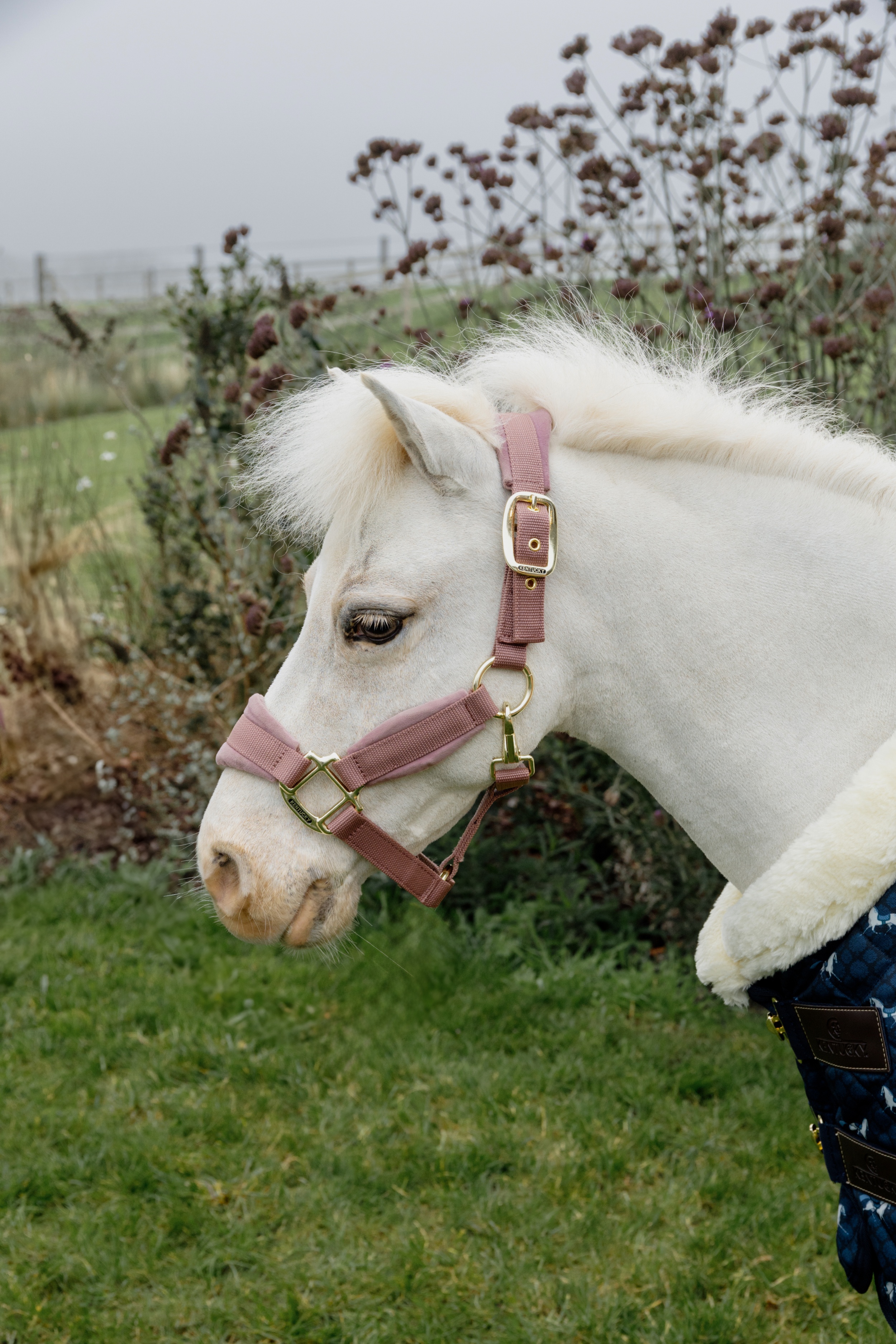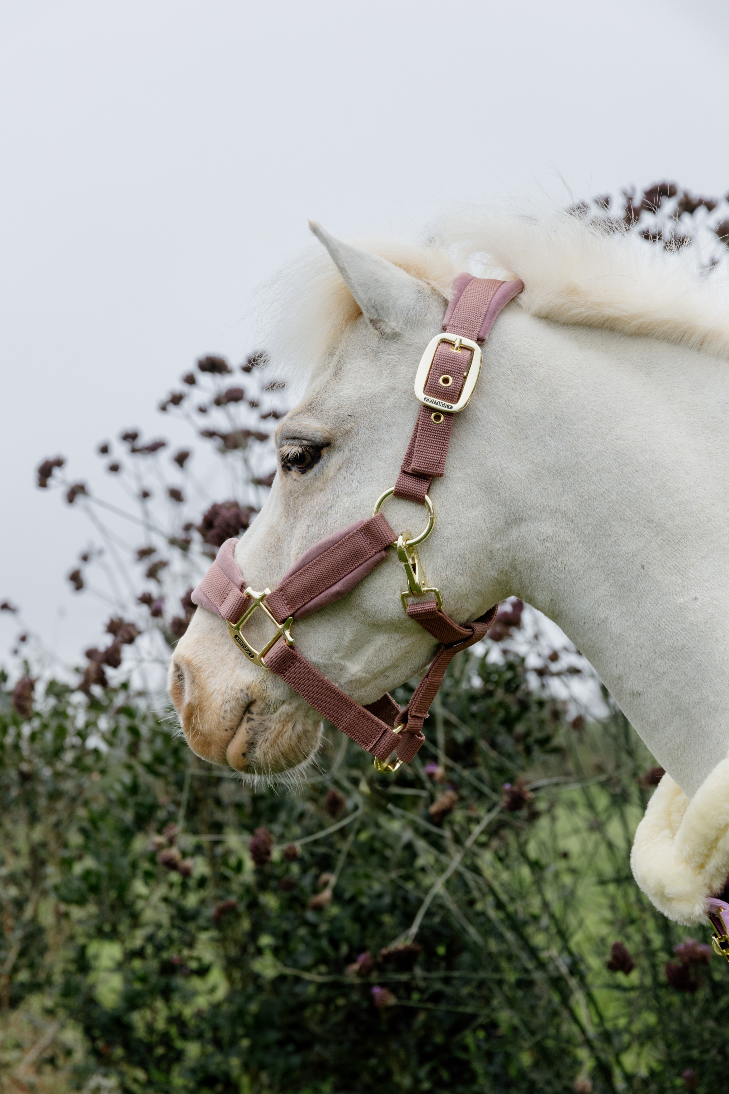 Het halster is gemaakt uit een sterke nylon stof, om de veiligheid van ja paard te garanderen. De neus, kaak en het nekstuk zijn verstevigd met velvet. Dit voelt enorm zacht aan en is erg comfortabel om te dragen. Het halster sluit met een vergulde karabijnhaak en is aan beide kanten van het kopstuk verstelbaar voor een perfecte pasvorm.
