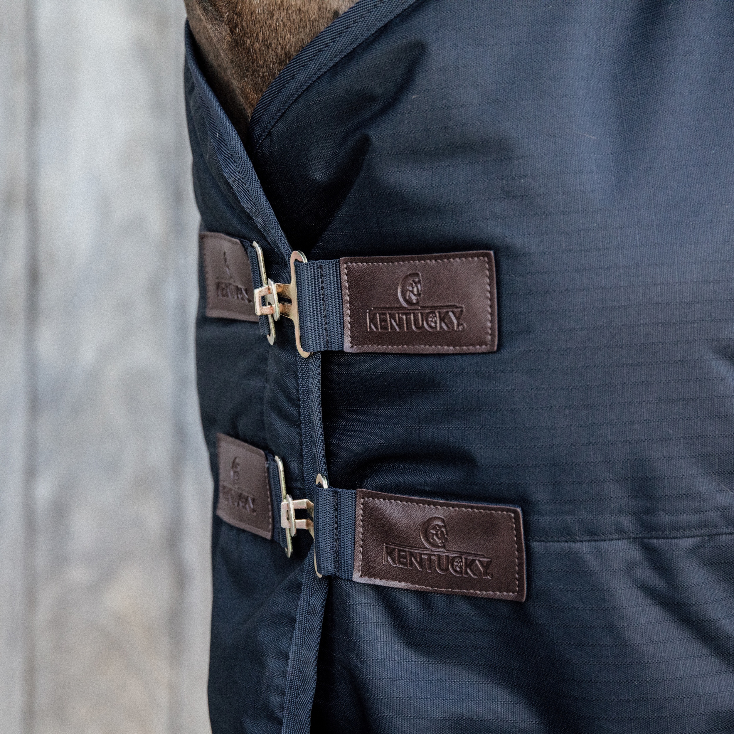 Het classic turnout deken heeft geen naad aan de rug om lekken te voorkomen. Voor extra warmte kan het turnout deken gebruikt worden met een onderdeken, zoals het onderdeken classic. Als je paard meer bescherming nodig heeft, kan u een afneembaar halsdeel apart kopen. Het deken is afgewerkt in de bekende Kentucky stijl met 2 roestvrijstalen messing borstsluitingen, gecombineerd met een sterke klittenband sluitingen, 2 kruisingels en een afneembaar bilkoord.
