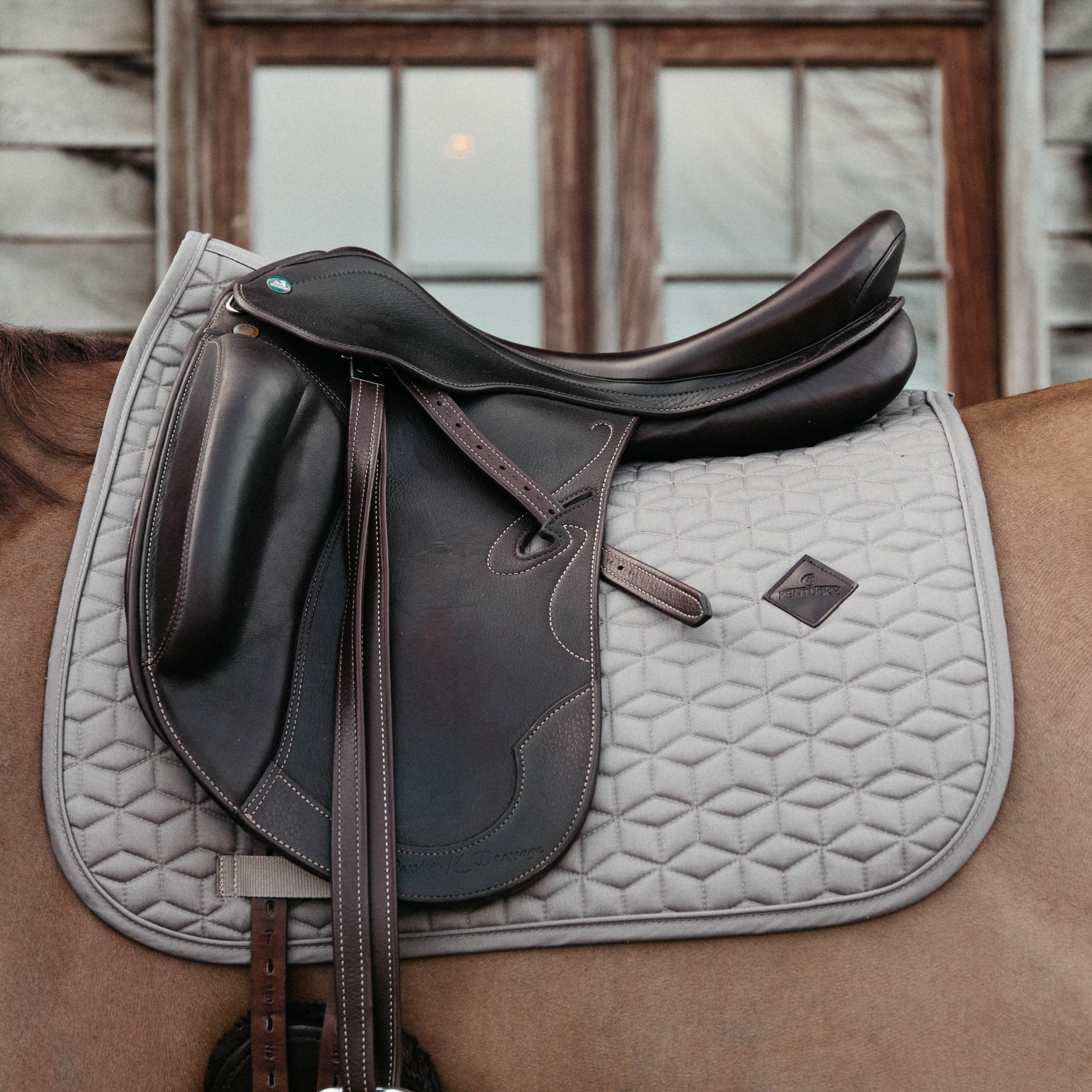 Met deze zadeldoek classic heb je eindeloos veel opties. Je kan hem gebruiken in zijn eenvoud of borduren met een logo of de naam van je paard. De zadeldoek kan ook gebruikt worden in combinatie met onze bandages en oornetjes voor een volledige Kentucky look.