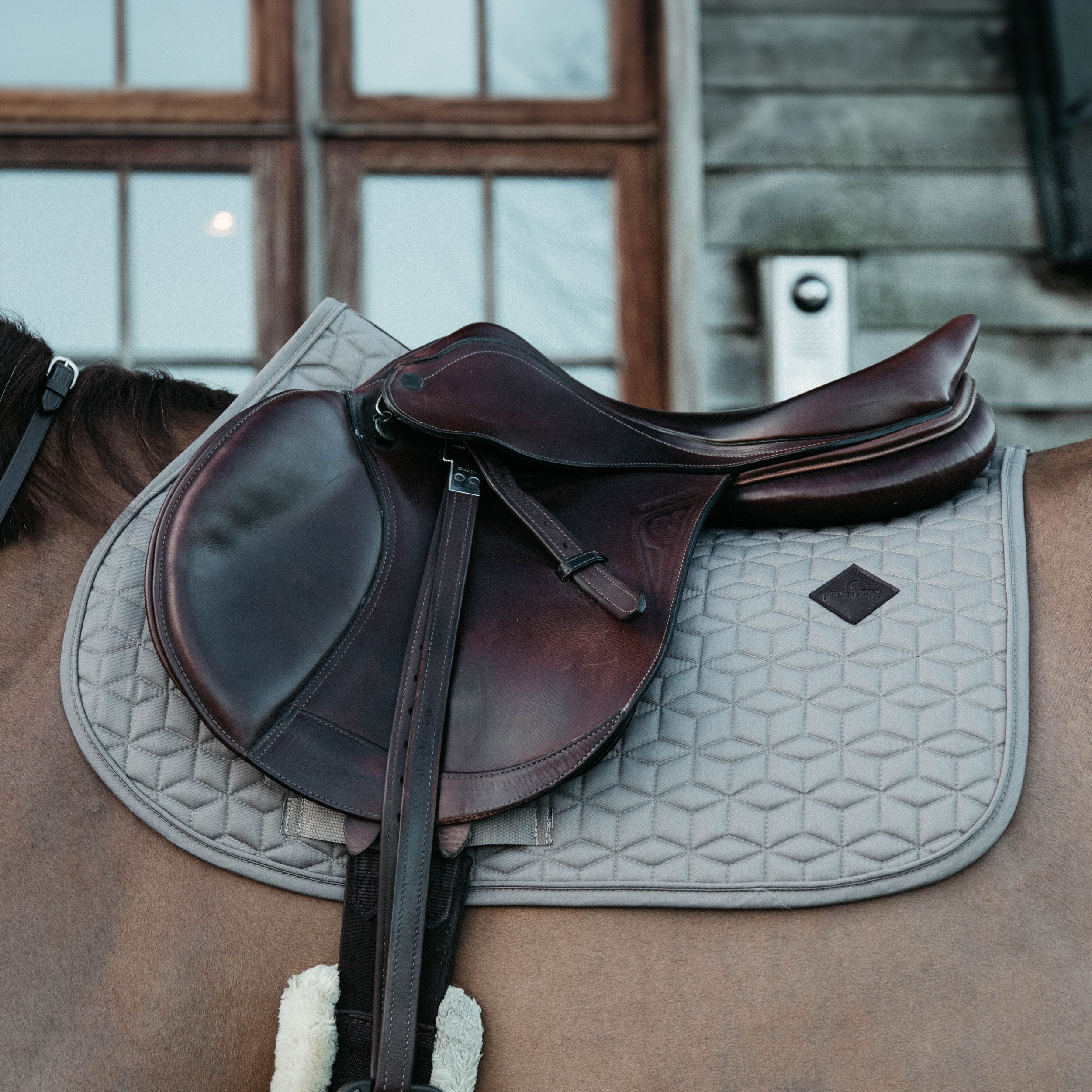 Met deze zadeldoek classic heb je eindeloos veel opties. Je kan hem gebruiken in zijn eenvoud of borduren met een logo of de naam van je paard. De zadeldoek kan ook gebruikt worden in combinatie met onze bandages en oornetjes voor een volledige Kentucky look.