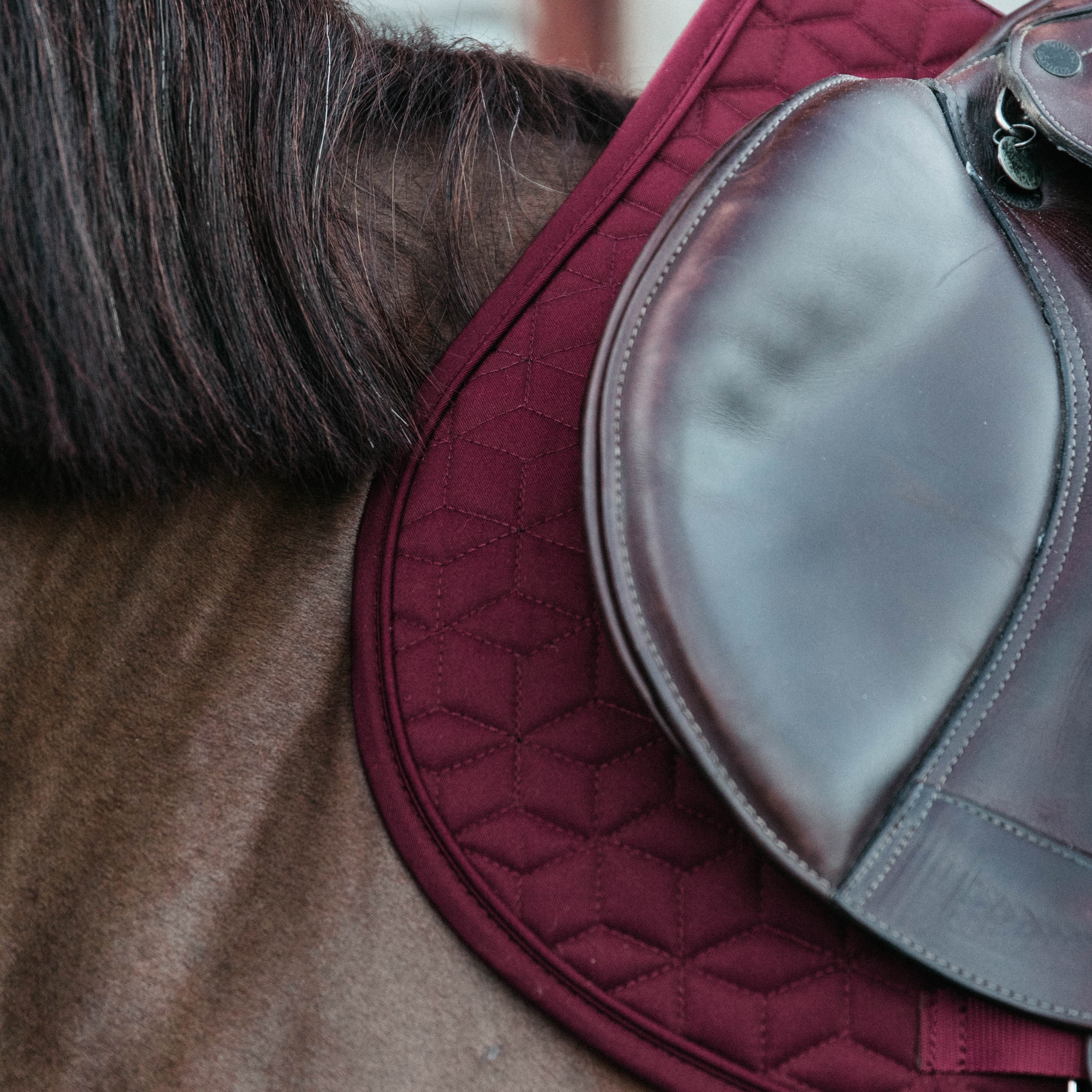 Het zadeldekje is anatomisch gevormd en zorgt ervoor dat de schoft vrij is, om druk en wrijving te voorkomen. Er zijn geen vervelende lusjes aan het dekje, alleen een singellus. Dankzij de vorm en voering van de zadeldoek, blijft deze mooi op zijn plaats liggen tijdens het rijden.