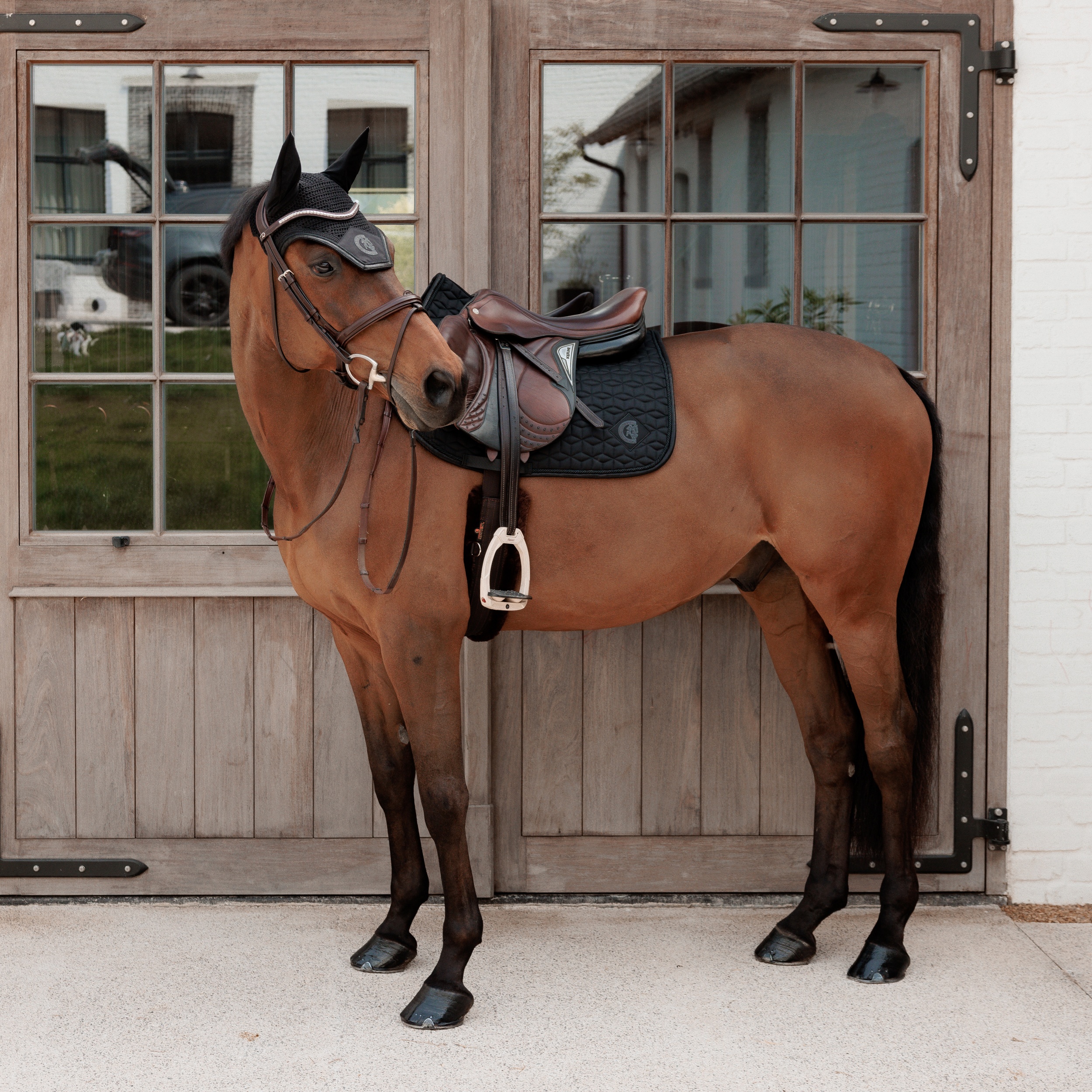 Deze zadeldoek combineert de anatomische pasvorm van Kentucky met een stijlvolle twist. De fonkelende bies vangt subtiel het licht en geeft je uitrusting een chique accent zonder overdreven te zijn. Of je nu thuis rijdt of in de ring verschijnt, dit zadeldoek zorgt voor een verzorgde look en optimaal comfort voor je paard. Het 3D-logo geeft een eigentijdse afwerking – een must-have voor elke ruiter die graag straalt.