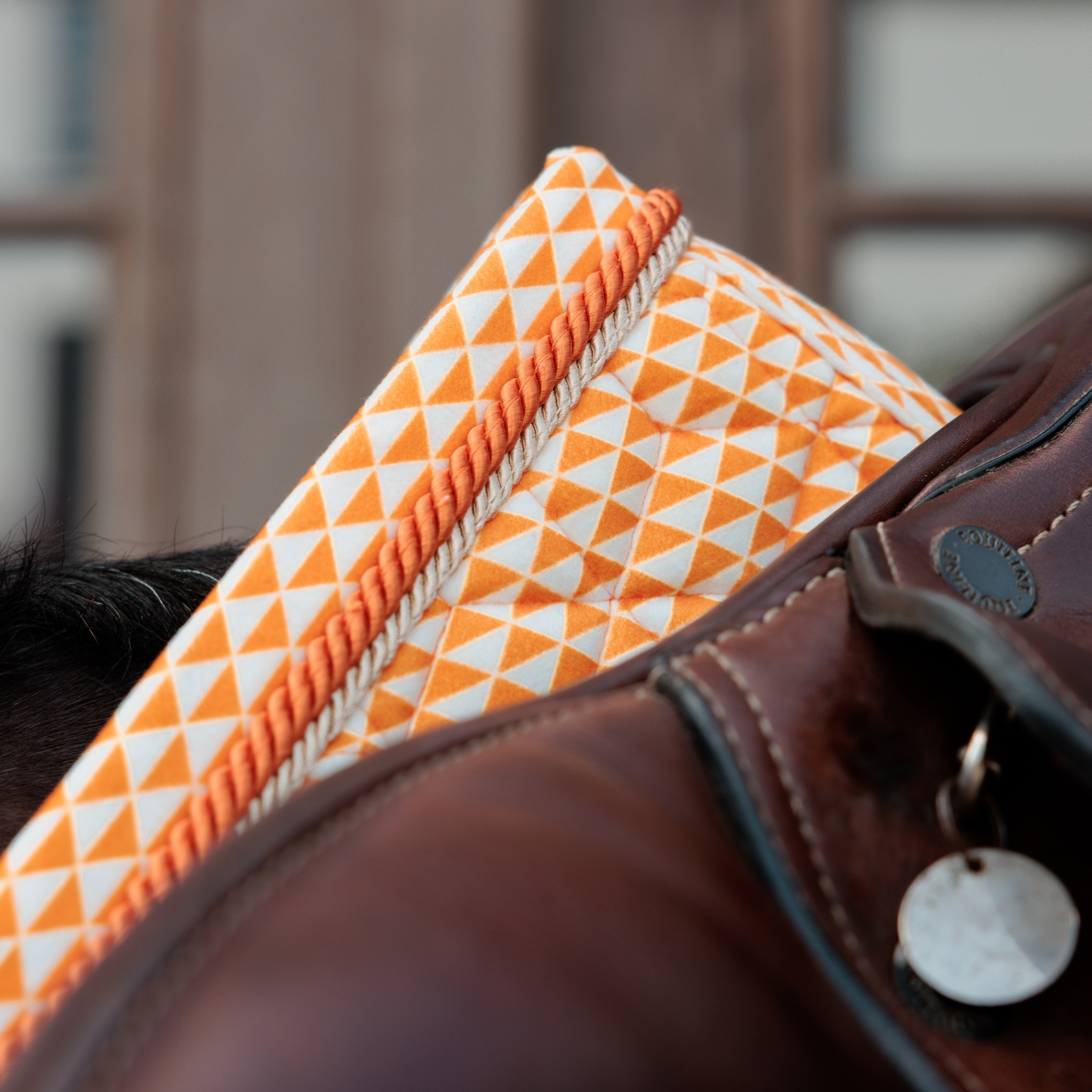 Dit limited edition zadeldoek valt op door zijn originele prints op de fluwelen stof, waardoor hij uniek is in de collectie. Het sterstiksel en de elegante koorden benadrukken het hoogwaardige vakmanschap, terwijl de functionele, sneldrogende voering zorgt voor optimaal comfort van je paard tijdens elke training. Kies tussen de dressuur- of springvorm die bij jouw discipline past, en maak de look compleet met het bijpassende oornetje ref. 42637 voor een verfijnde, harmonieuze uitstraling.