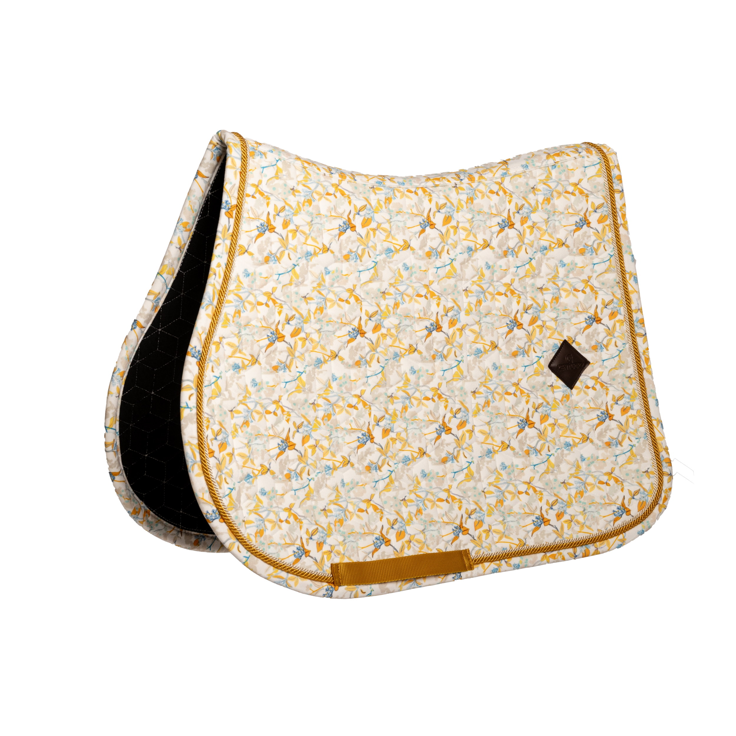Dit limited edition zadeldoek valt op door zijn originele prints op de fluwelen stof, waardoor hij uniek is in de collectie. Het sterstiksel en de elegante koorden benadrukken het hoogwaardige vakmanschap, terwijl de functionele, sneldrogende voering zorgt voor optimaal comfort van je paard tijdens elke training. Kies tussen de dressuur- of springvorm die bij jouw discipline past, en maak de look compleet met het bijpassende oornetje ref. 42637 voor een verfijnde, harmonieuze uitstraling.