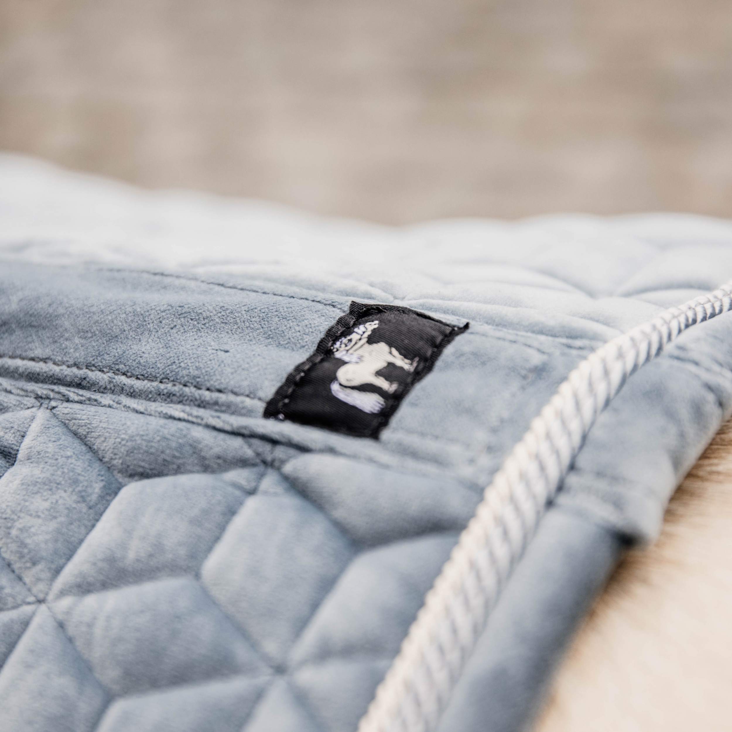 Dit zadeldoek Velvet Jumping met dubbel gedraaide bies is zeer stijlvol en elegant. Het zadeldoek biedt een schokdempende functie aan tussen de rug van het paard en het zadel en voorkomt eventuele wrijving.